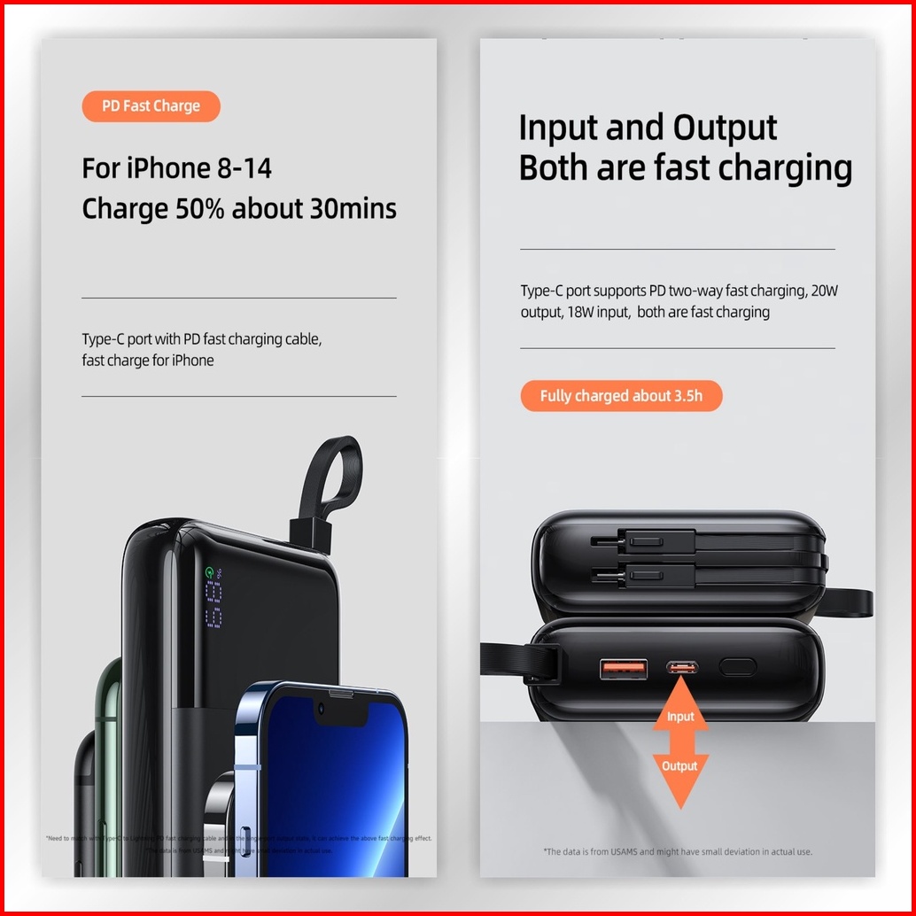 Usams Pb69 Powerbank Fast Charging Digital Display 22.5w 10000mah With Lanyard