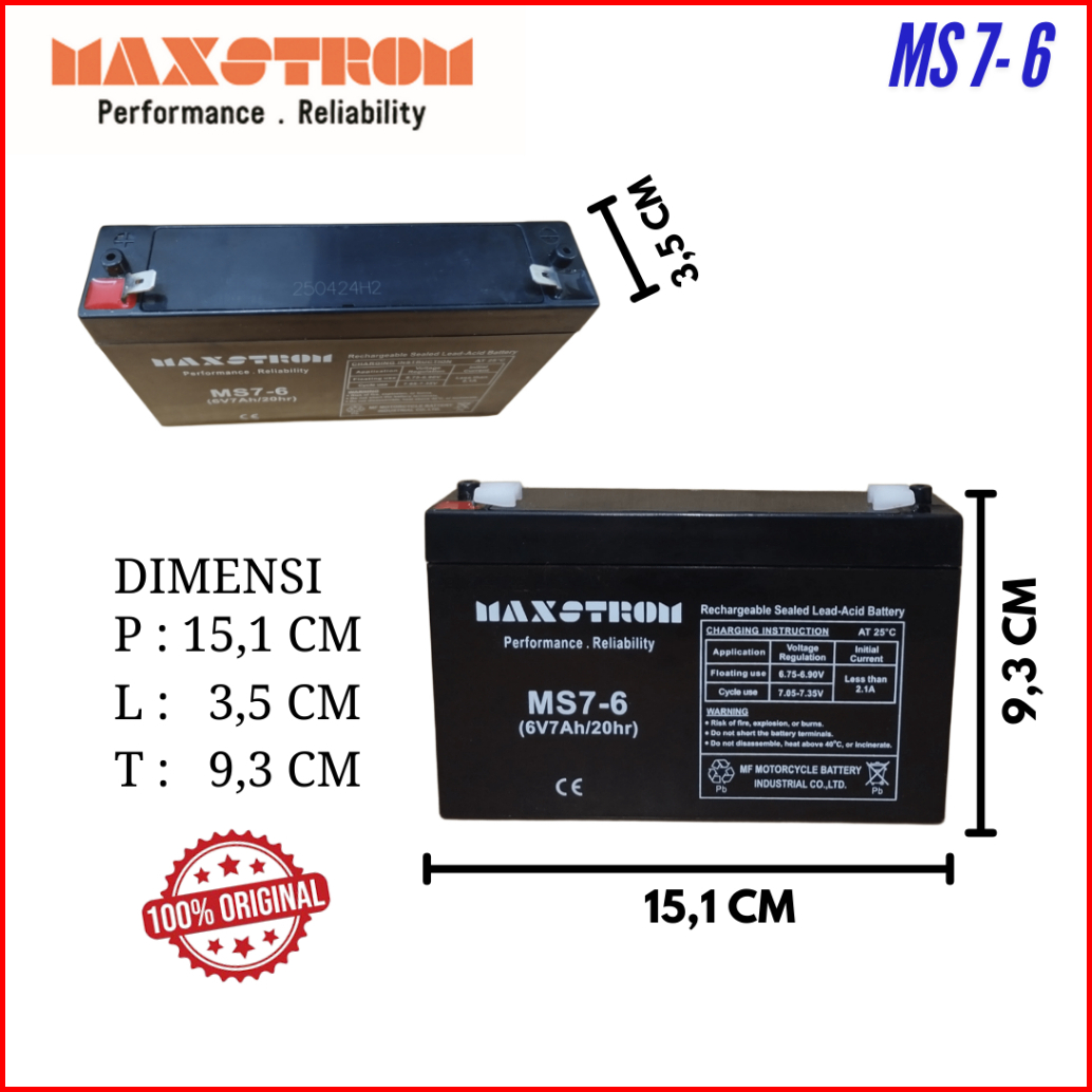 Aki Kering Vrla Mobil Mainan Maxstrom Mf Motorcyclefit 6v 7ah