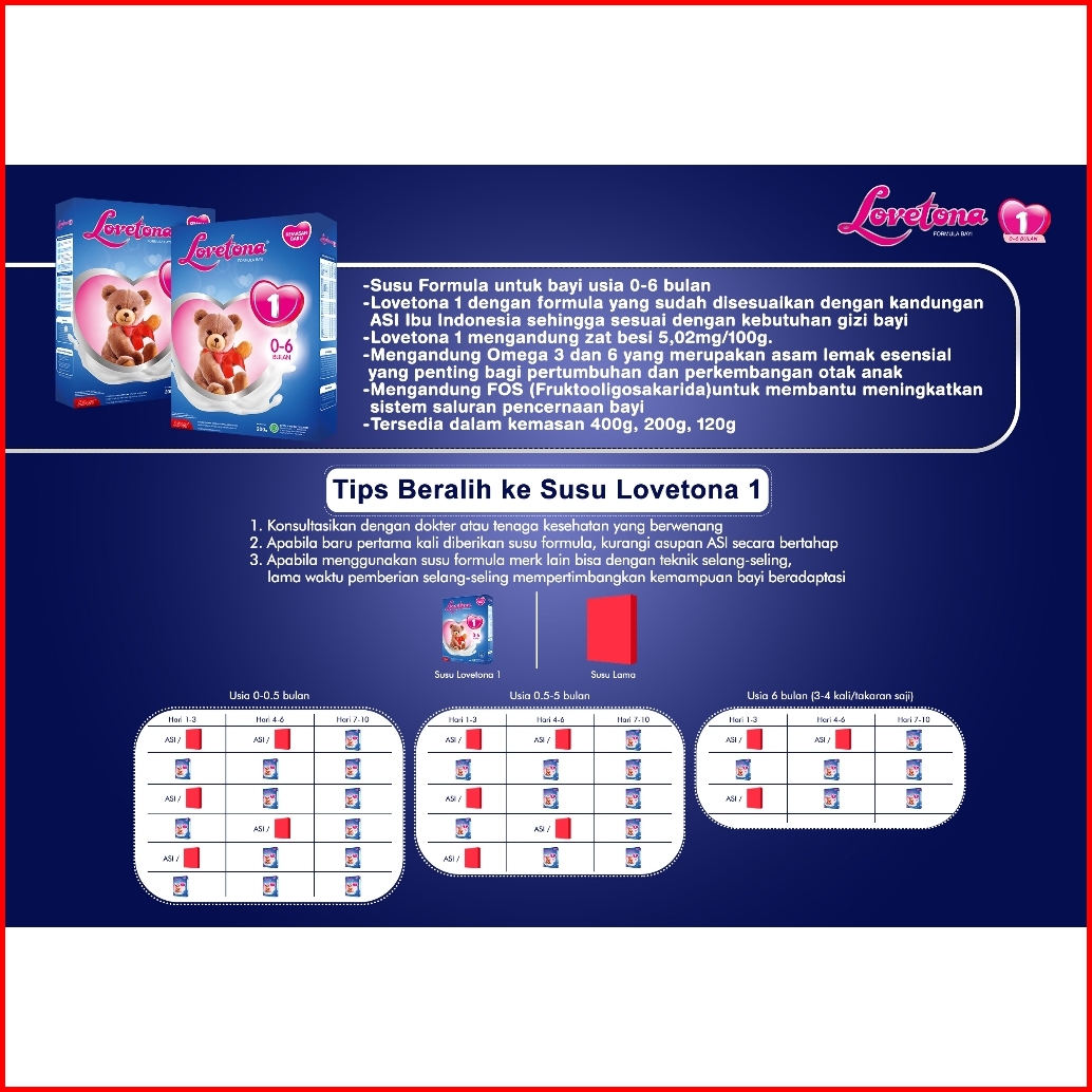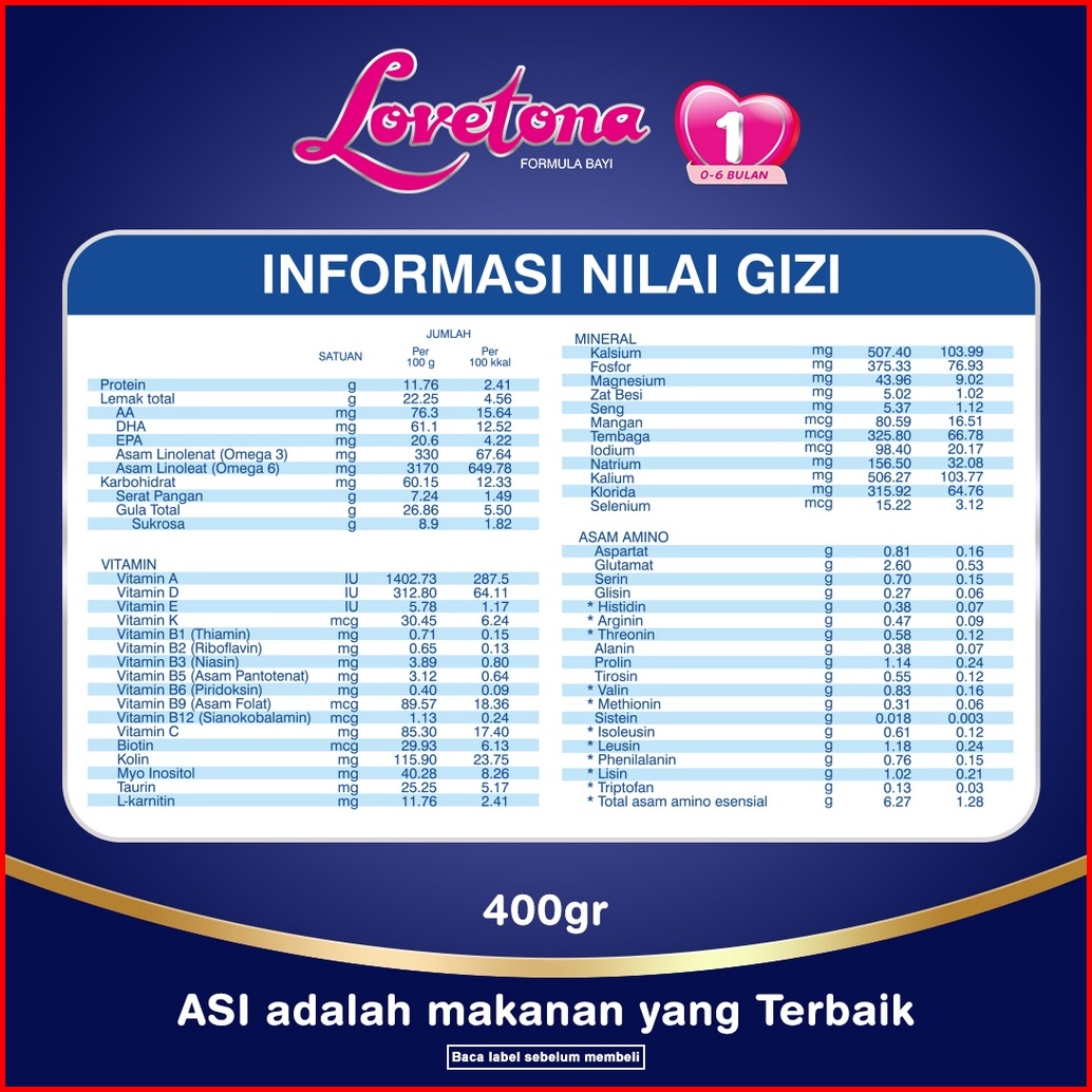 Paket Lovetona 1 Susu Formula Bayi 0 - 6 Bulan 400 Gr X 5 Box