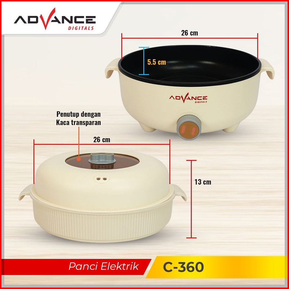 Garansi 1 Tahunadvance C-360 Panci Listrik Bisa Masak Nasi 2.6l Elektrik Multifungsi Warmer Steamer Cooker