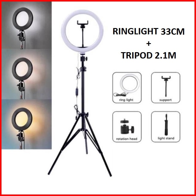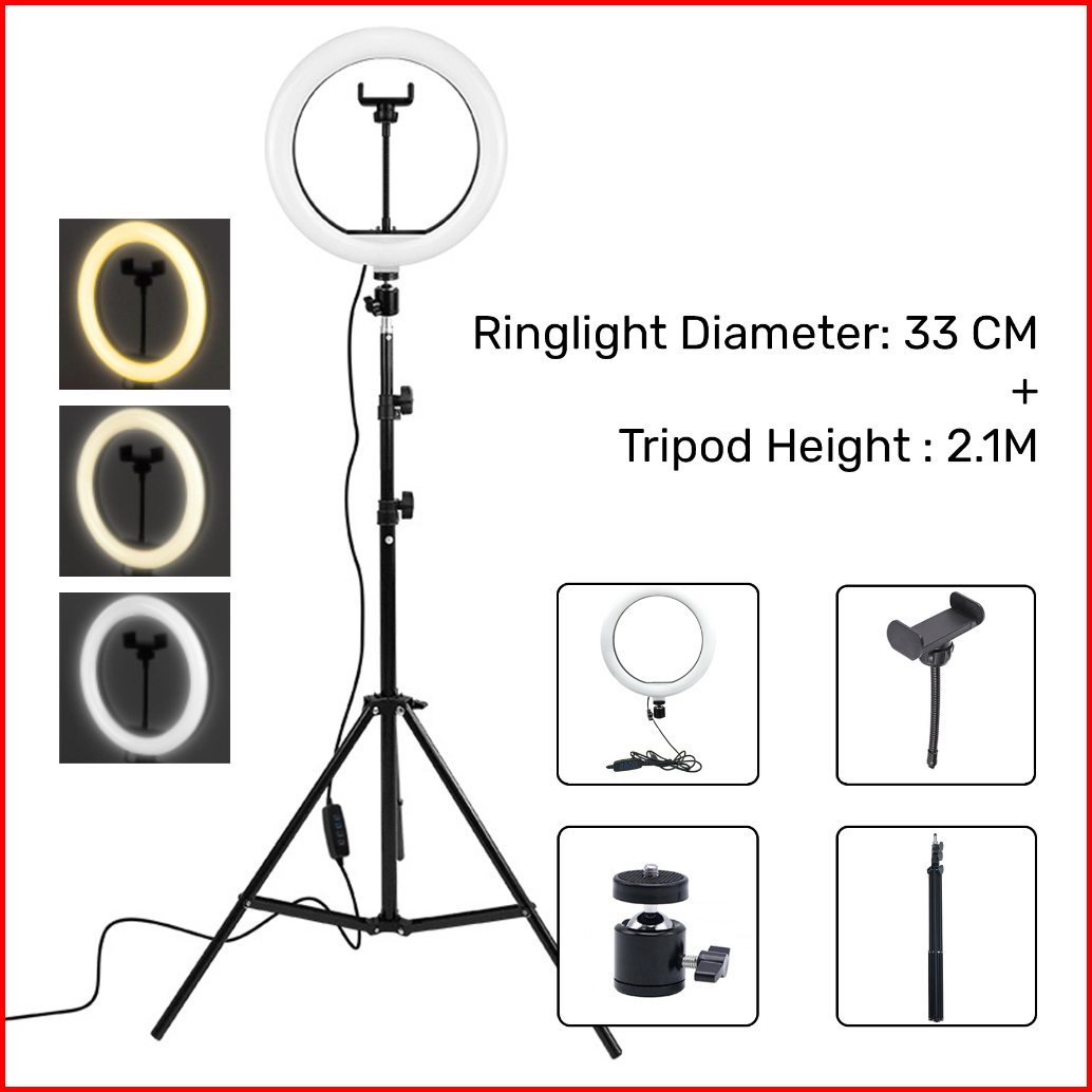 Tripodpedia Paket Ringlight 33cm Tripod 210cm 2 Meter 2m For Hp Lampu Vlog