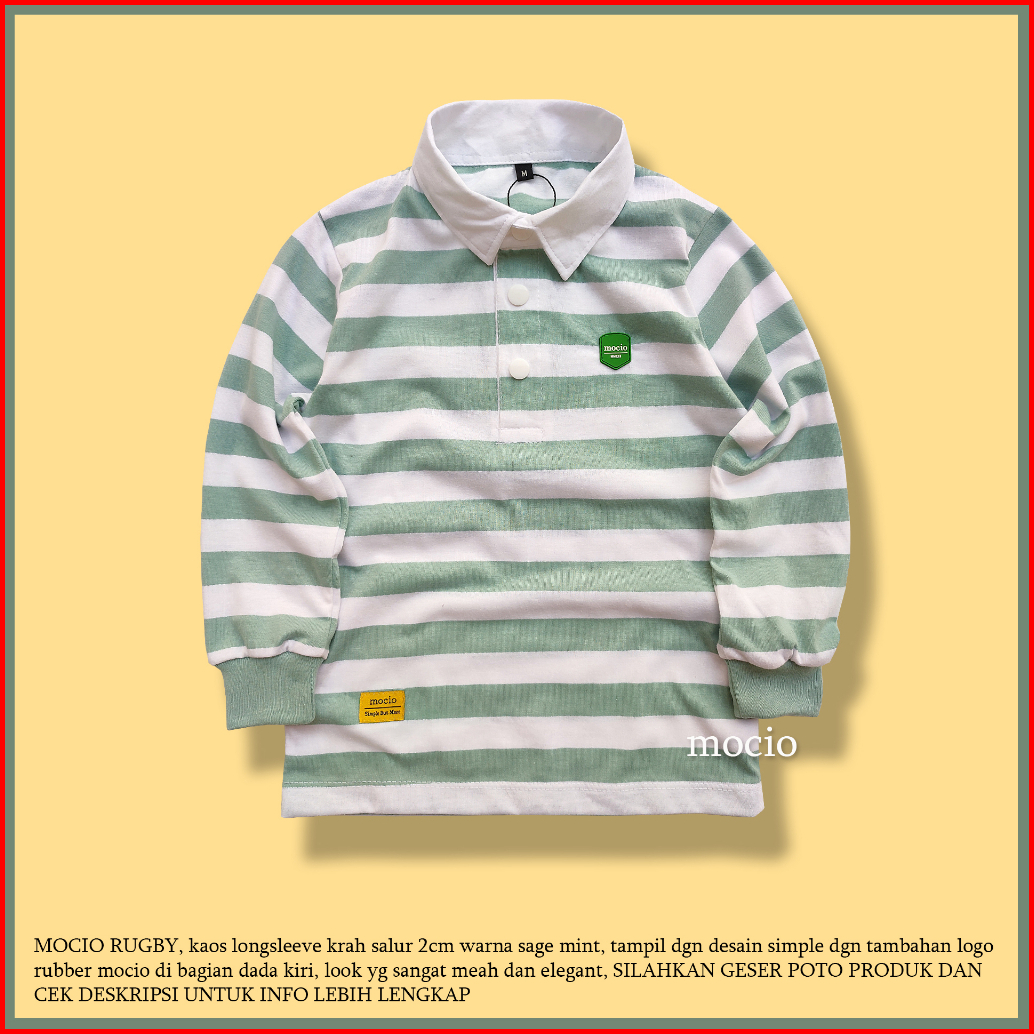 Mocio Rugby - Kaos Lengan Panjang Anak - Rugby T-shirt - Ls Anak - Baju Tangan Panjang Anak - Kaos Sage - Salur Sage - U