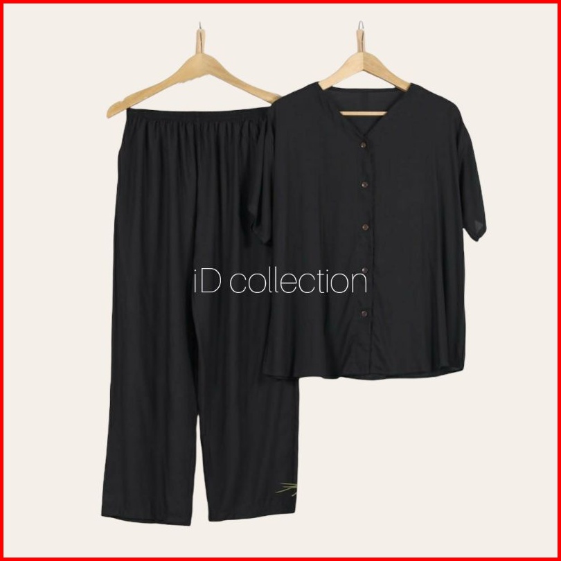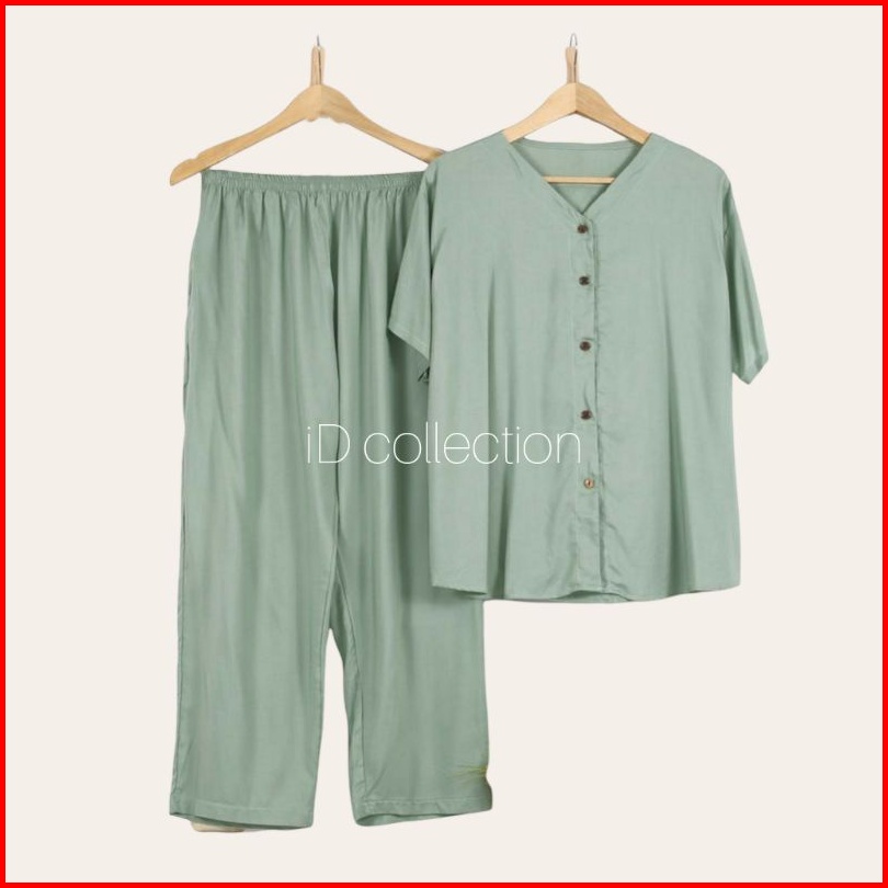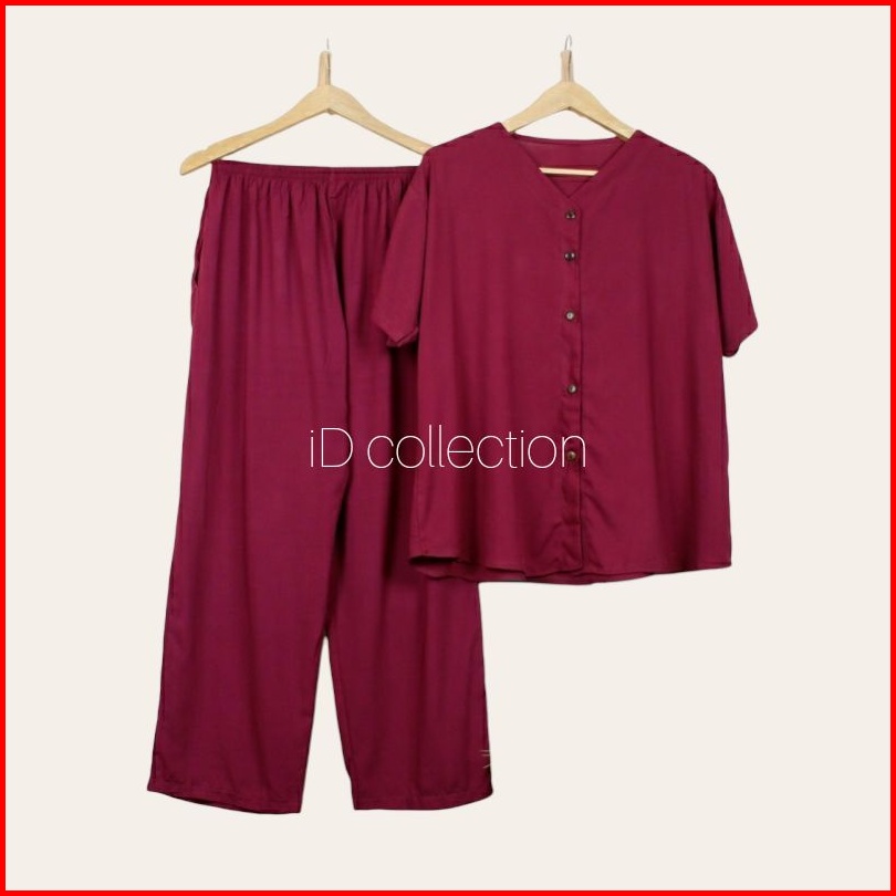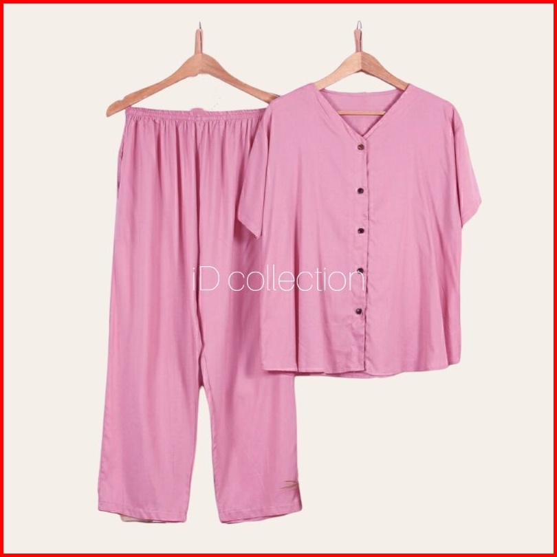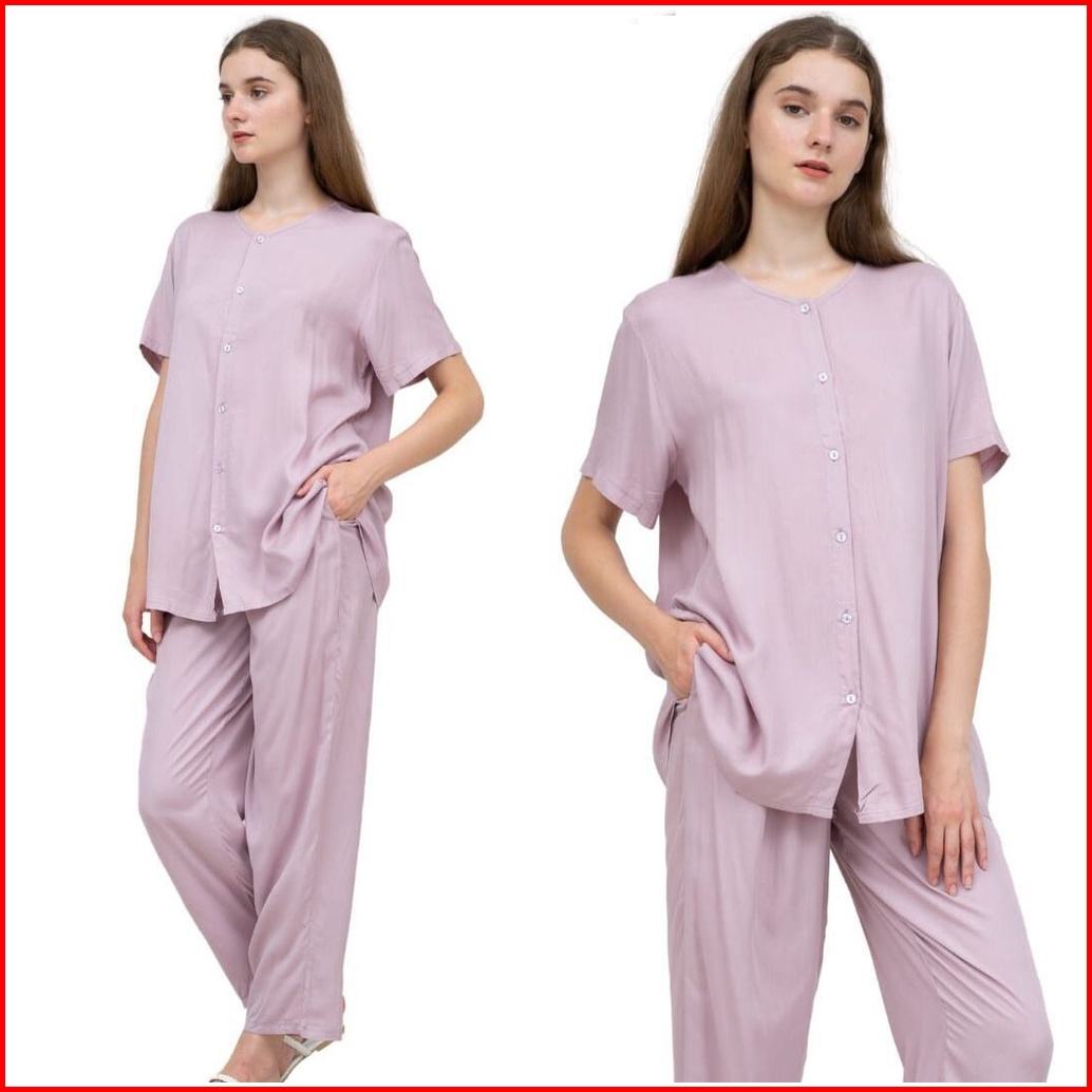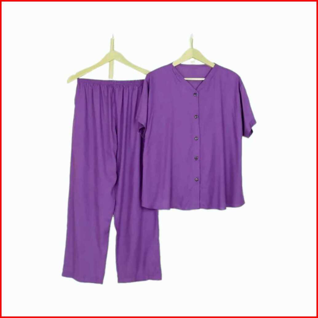 Piyama Wanita Dewasa Lengan Pendek Kancing Depan Baju Tidur Wanita Polos Rayon Pajamas Rayon Busui
