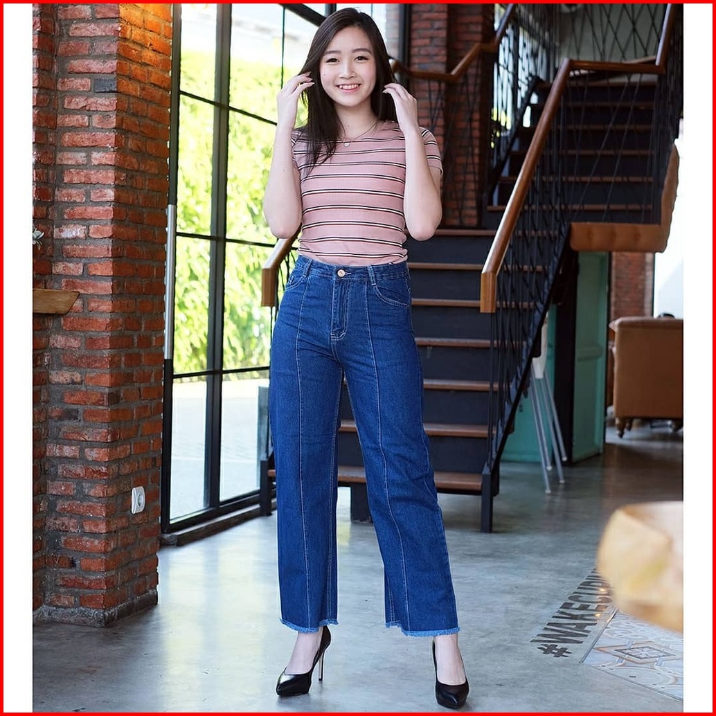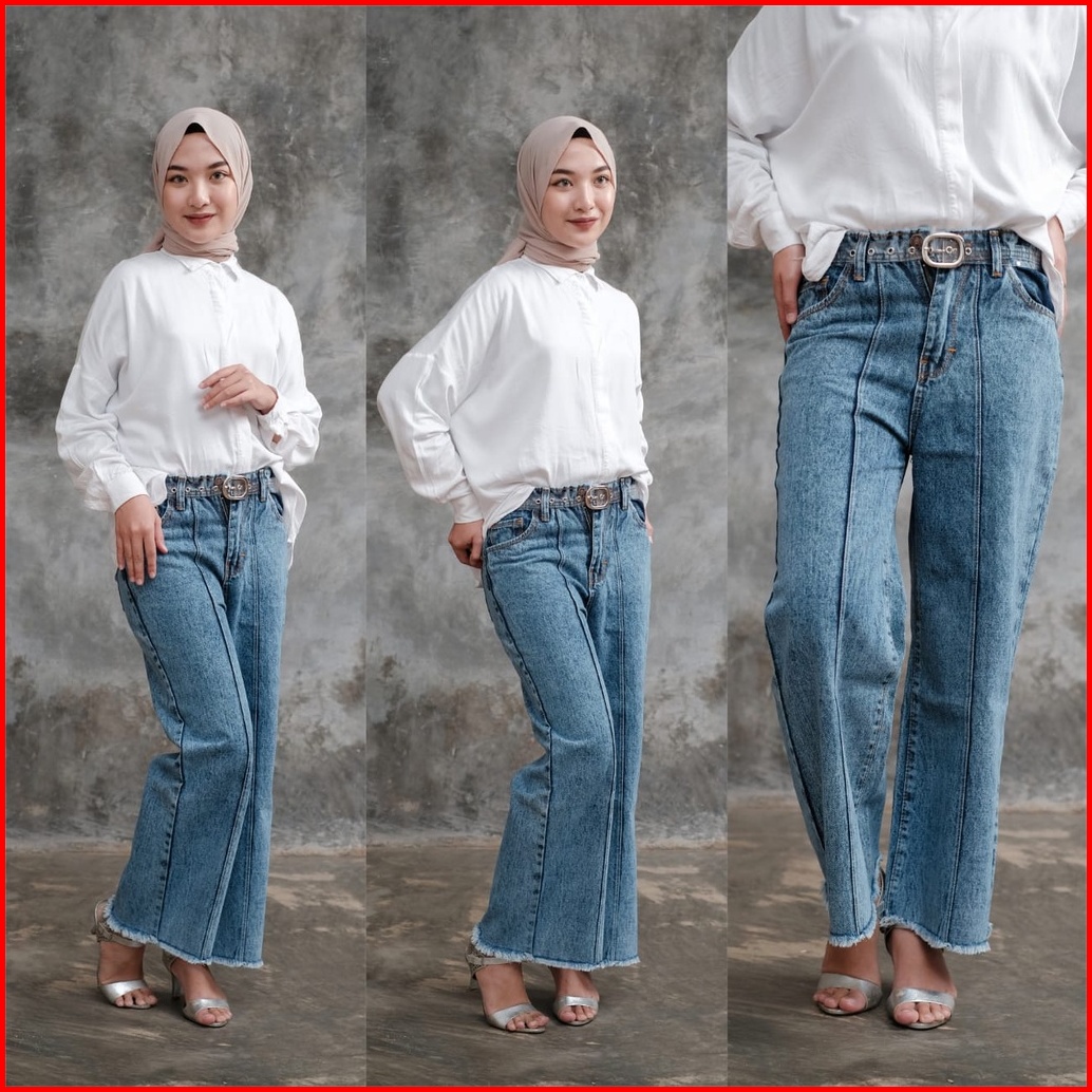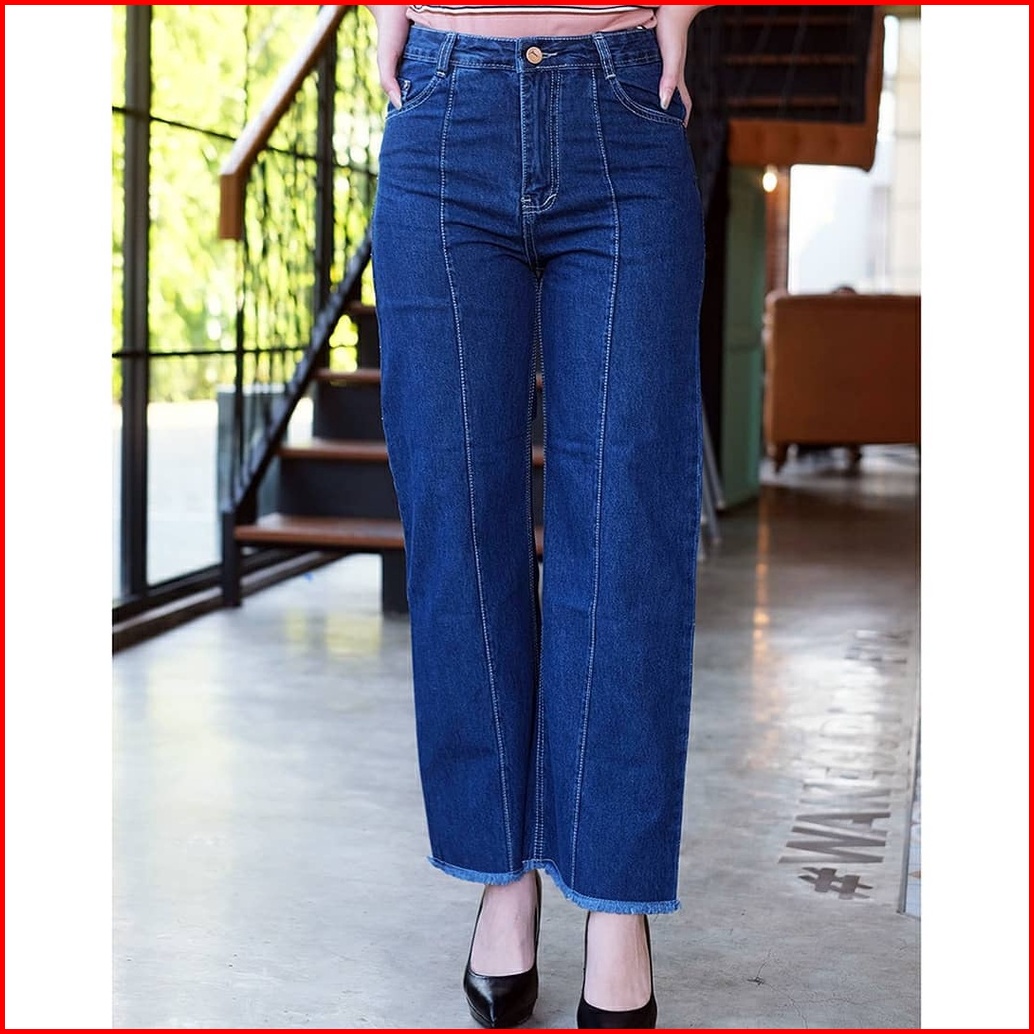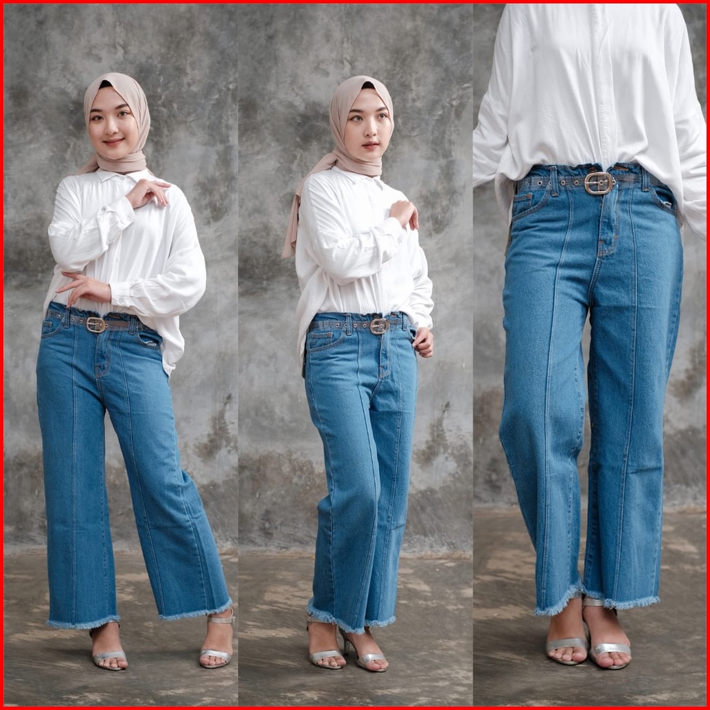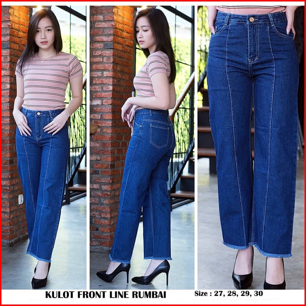 Magcun - Kulot Tulang Rawis Kulot Front Line Rumbai Haighwaist Kulot Jeans Wanita