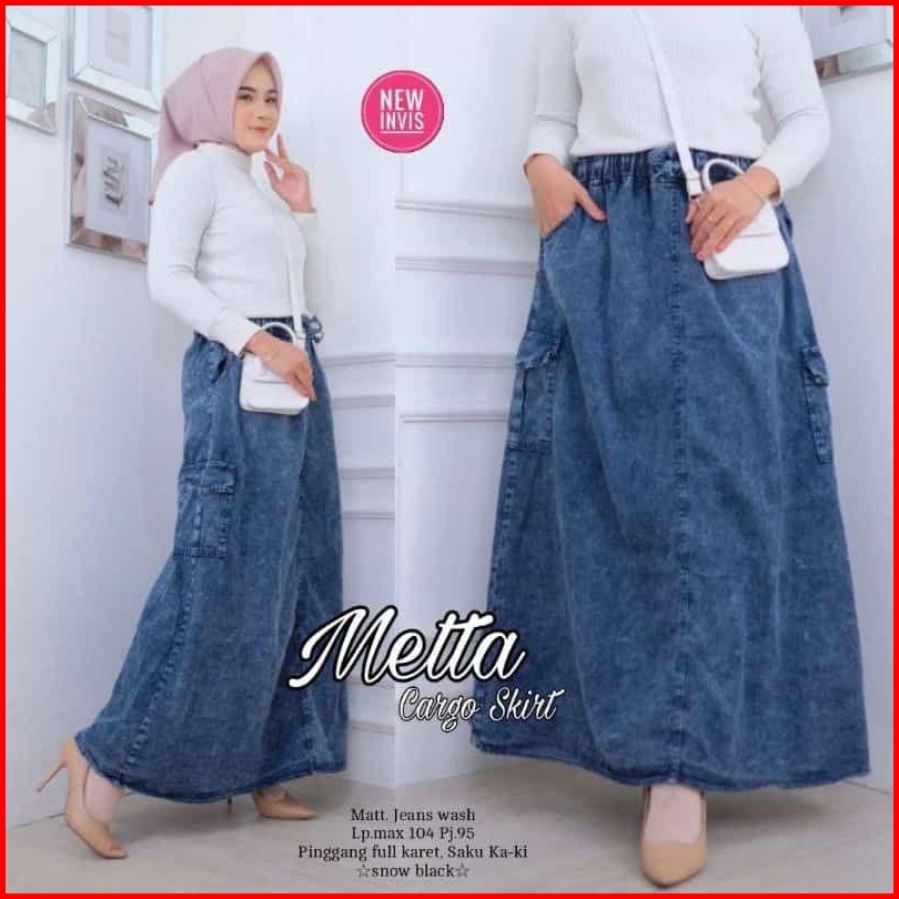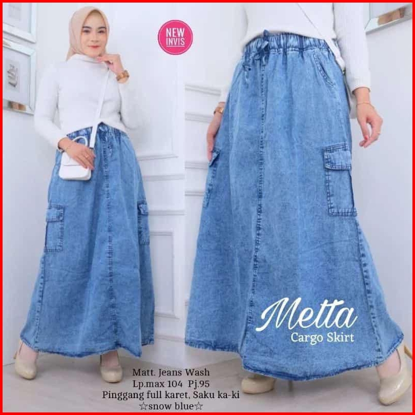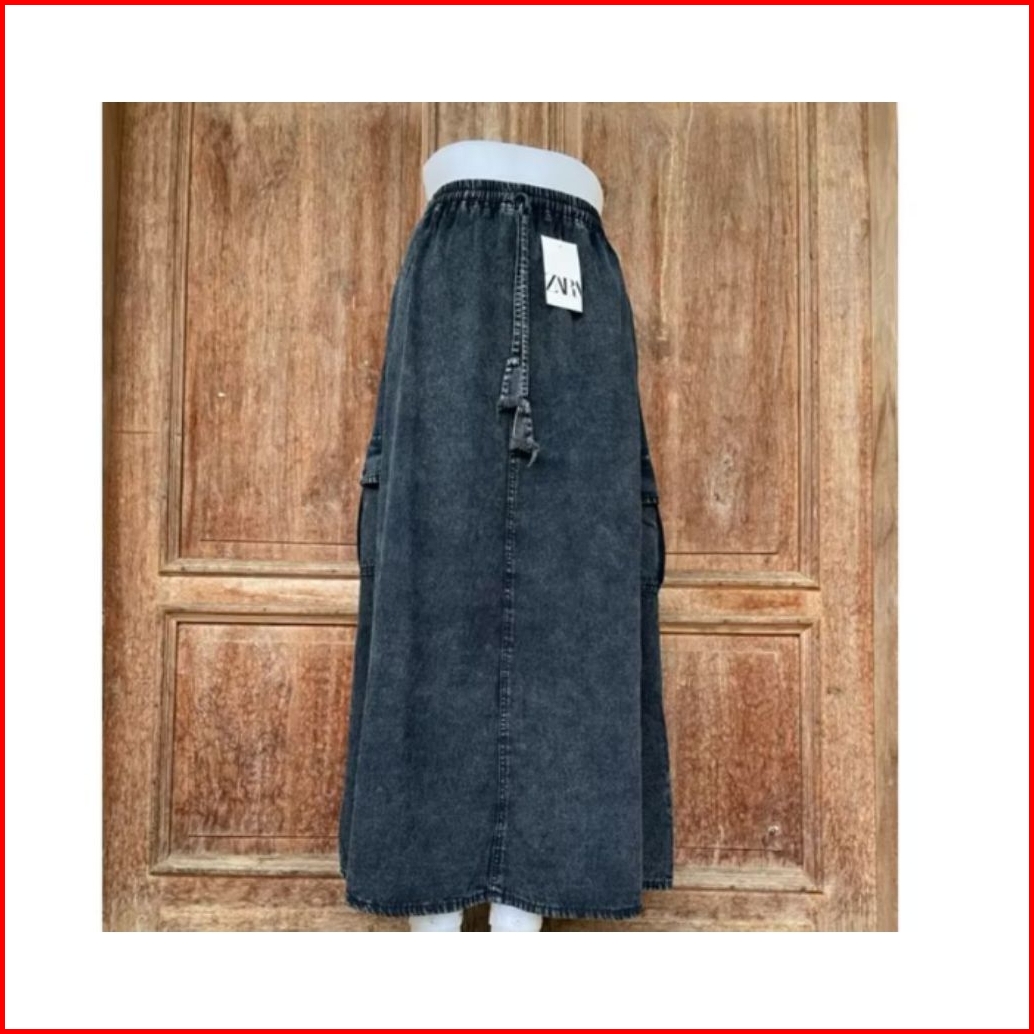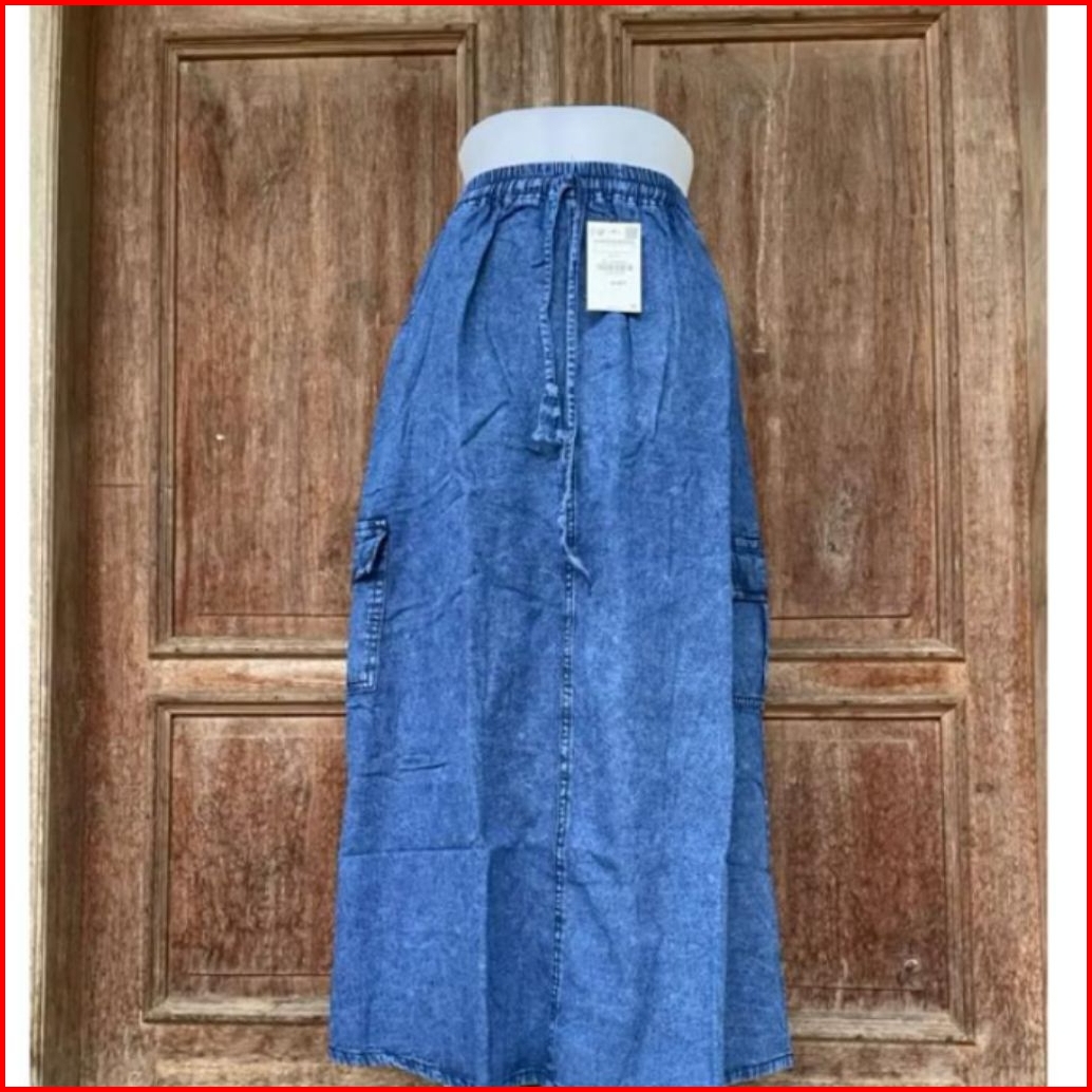 Rok Jeans Cargo Wanita Pinggang Full Karet Model Mayung Ukuran Jumbo Standar