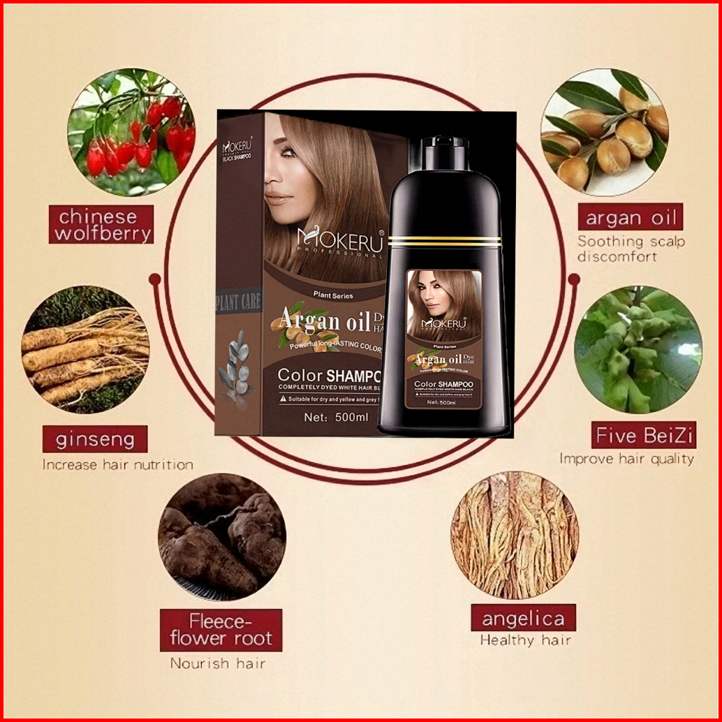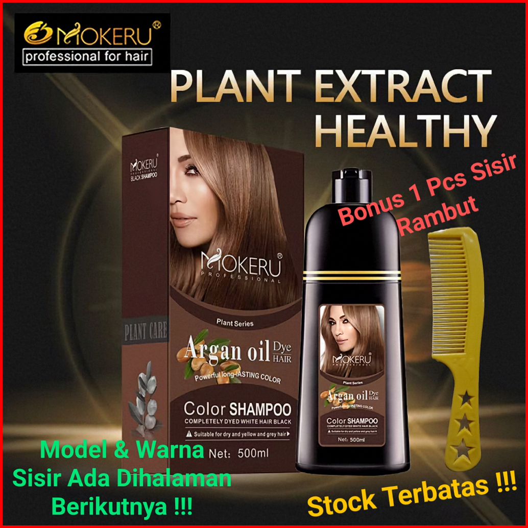 Mokeru Shampoo Pewarna Rambut Tanpa Bleaching Menghitamkan Rambut Uban Mengandung Argan Oil Shampo Hair 500ml 100 Origin