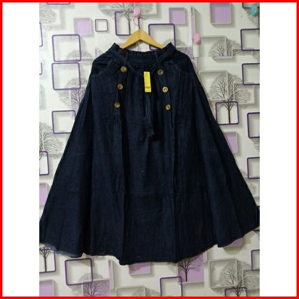 Rok Payung Wanita Bahan Jeans Variasi Kancing
