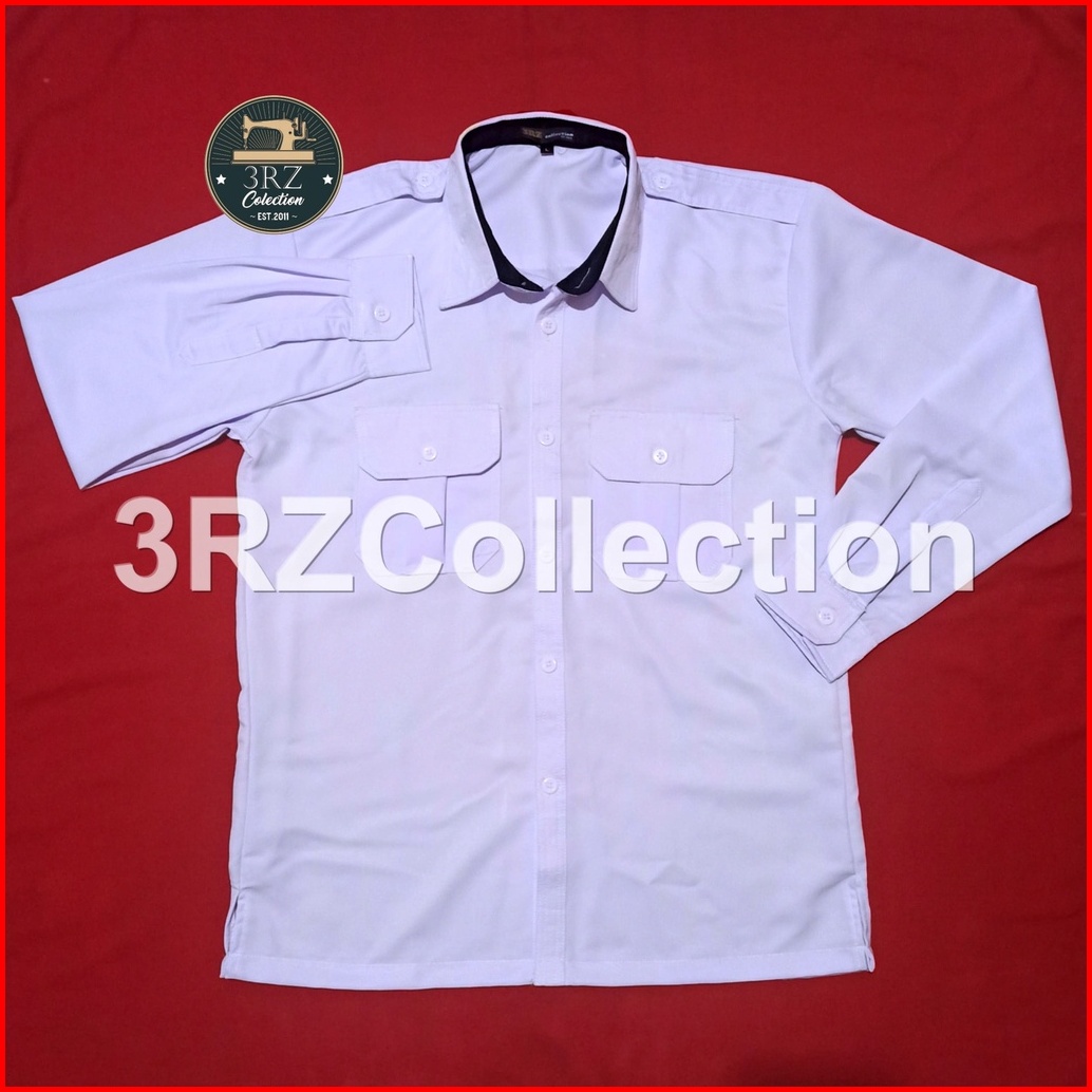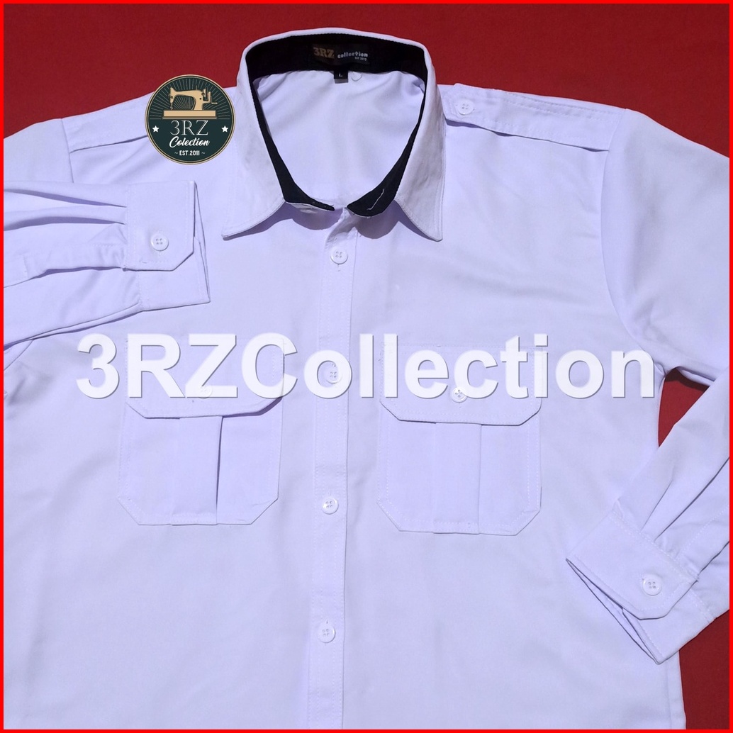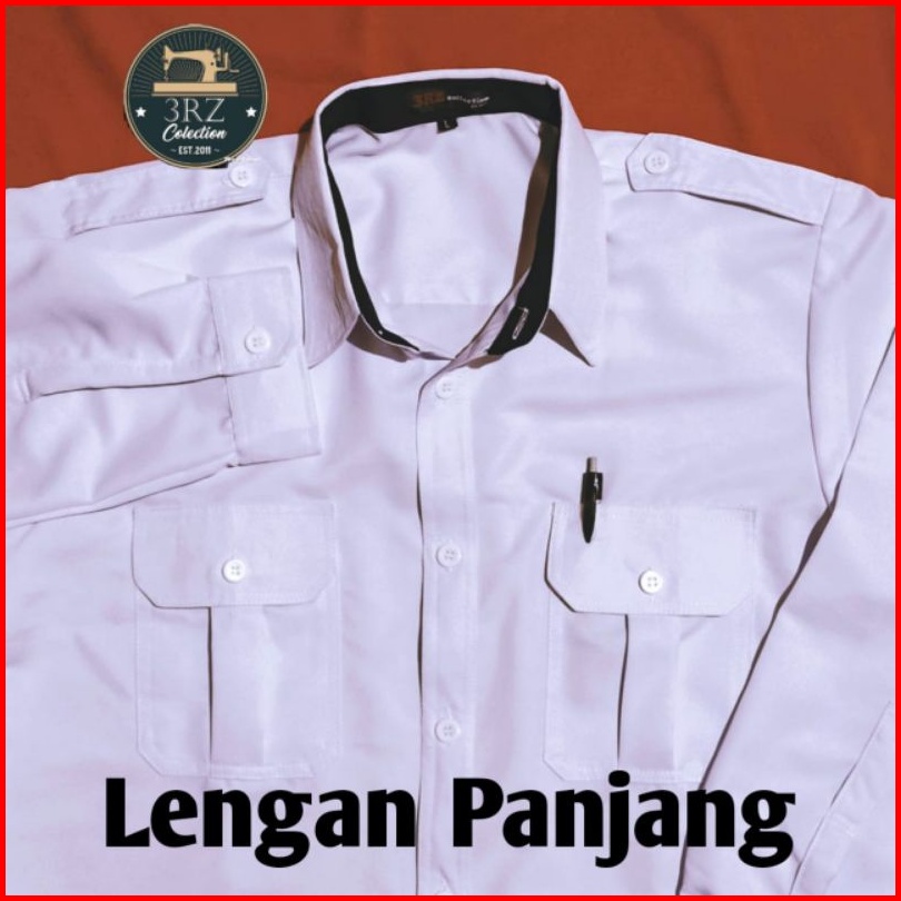 Baju Pdh Putih Pria Kemeja Dinas Putih Pria Lengan Panjang Seragam Pns Putih Pria Baju Putih Pns Pemda Kerah Hitam Terba
