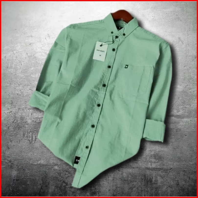 Kemeja Pria Basic Polos Lengan Panjang Hight Quality 1468d Hem Pria Katun Premium