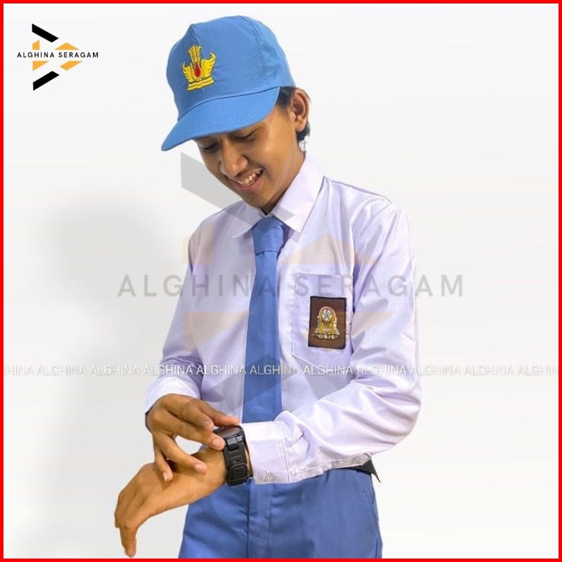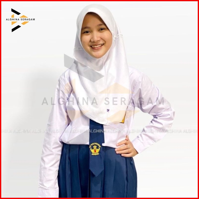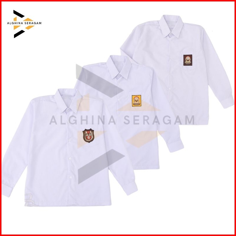 Alghina Baju Seragam Sekolah Sd Smp Sma Kemeja Atasan Putih Lengan Panjang Bet Bordir Kain Oxford Sariwarna Laki-laki Pe