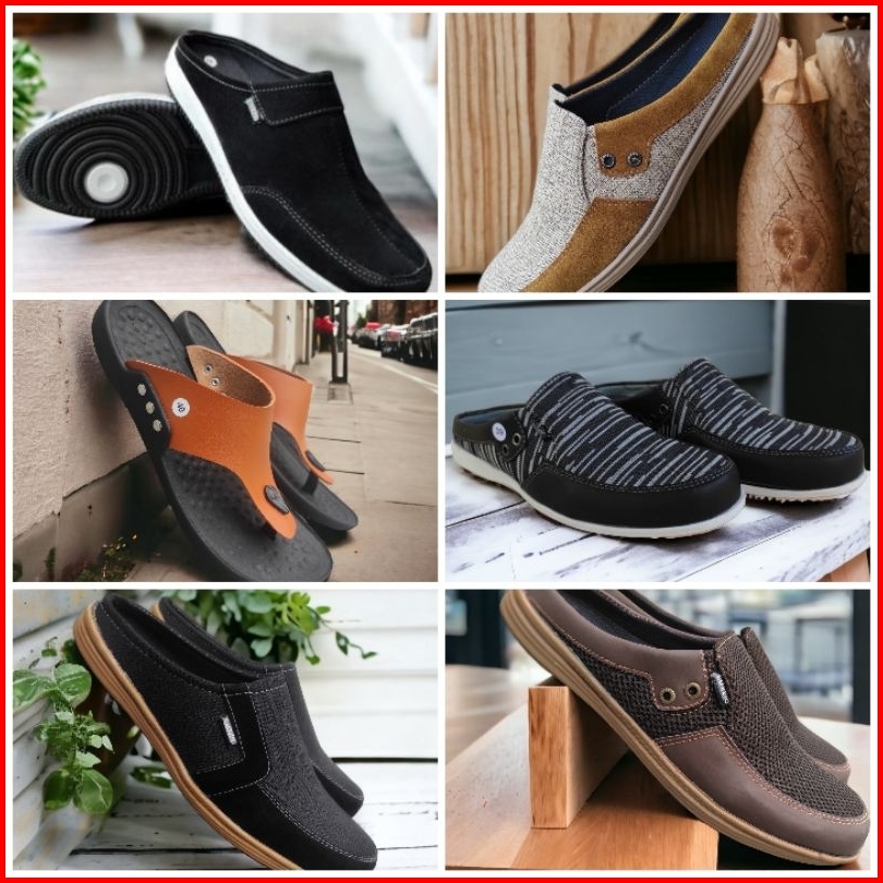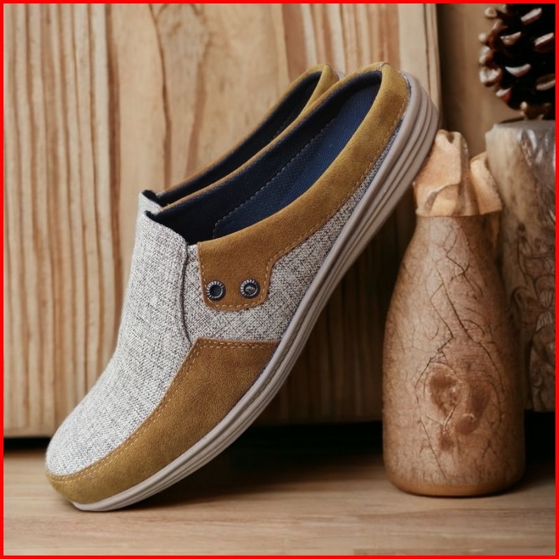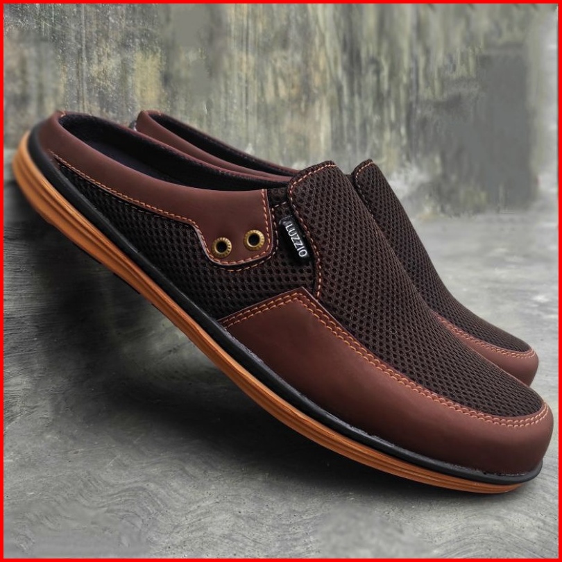 Bustong Slop Selop Sepatu Sandal Kulit Pria Slip On Kasual Sintetis Kerja Kantoran Formal Sol Karet