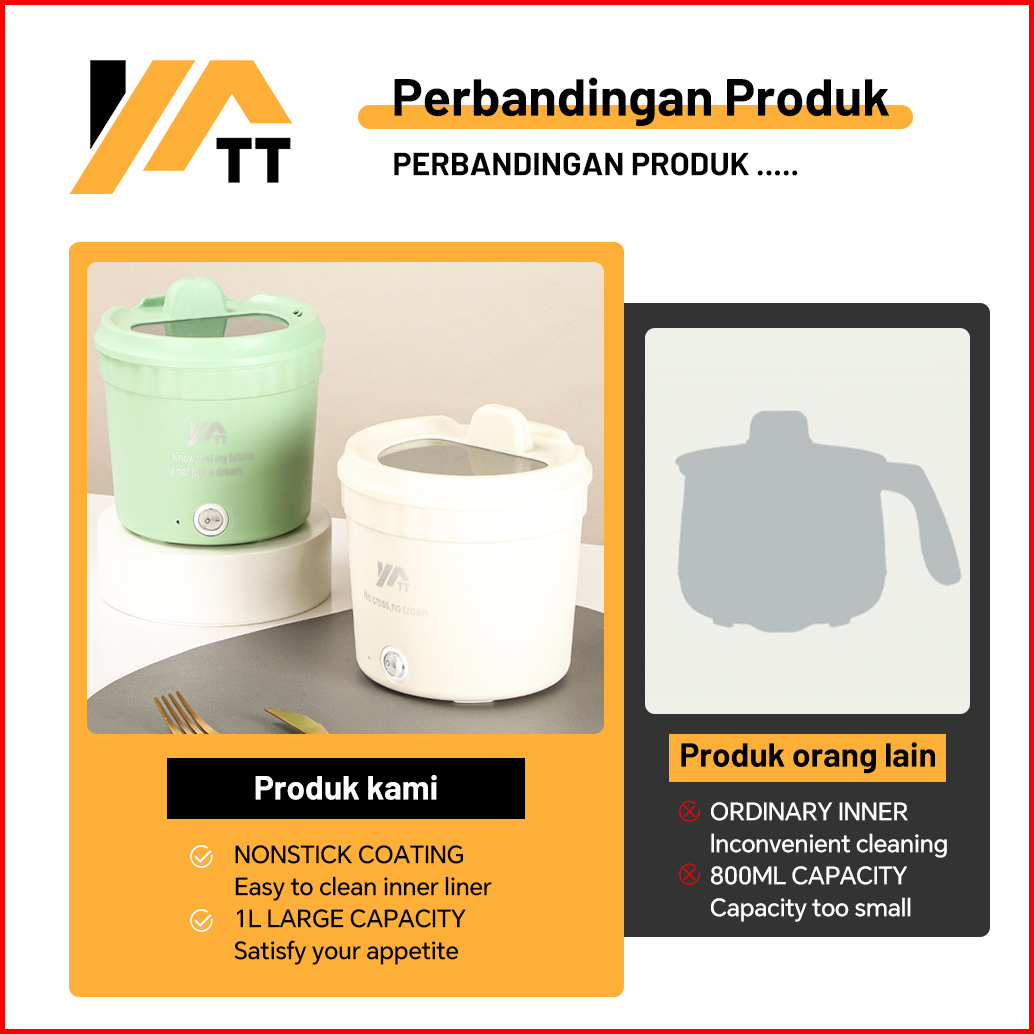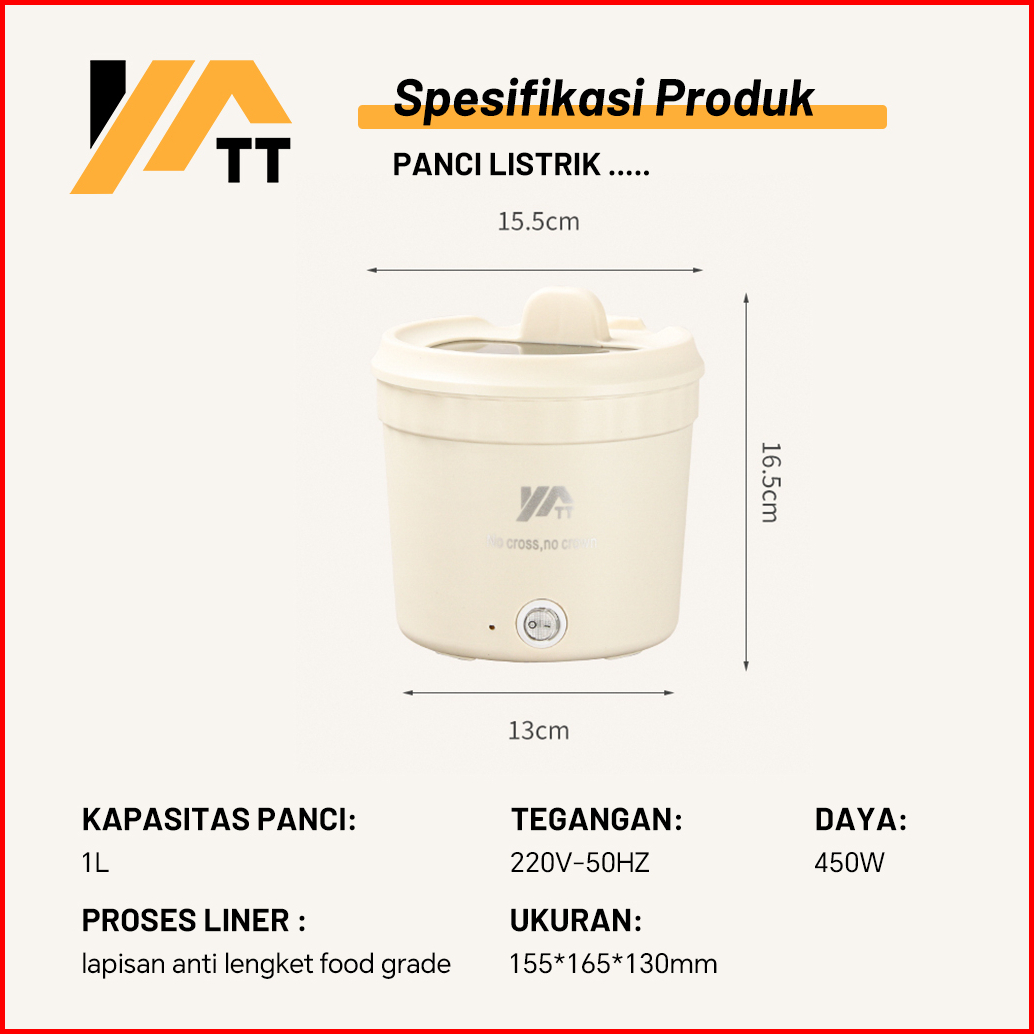 Yatt Panci Listrik Elektrik Portable Rice Cooker Mini Serbaguna 1l Antilengket Electric Cooking Pot