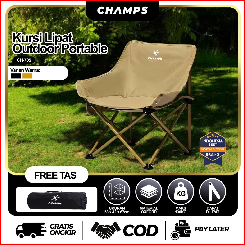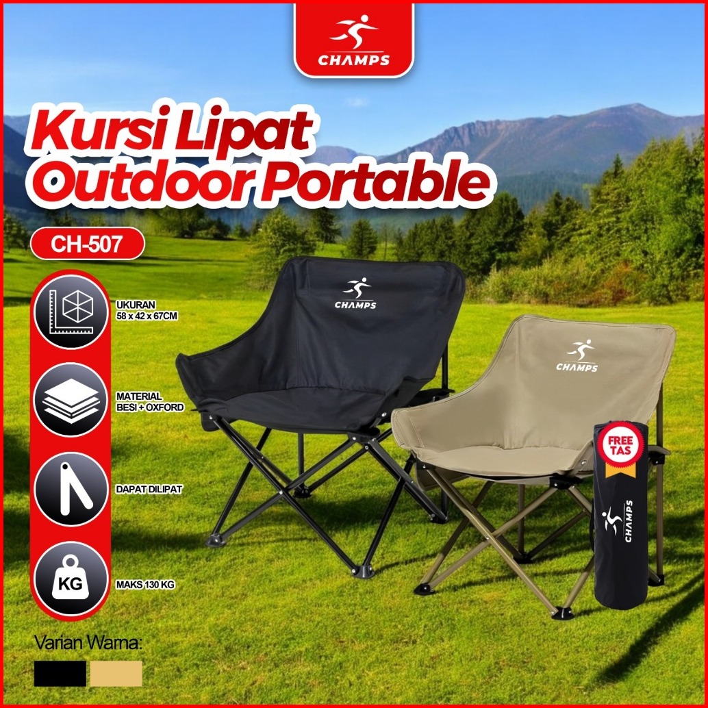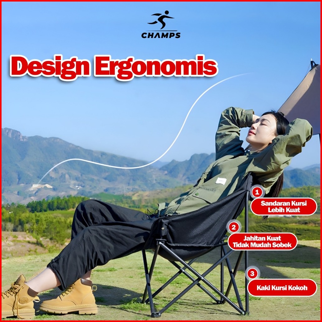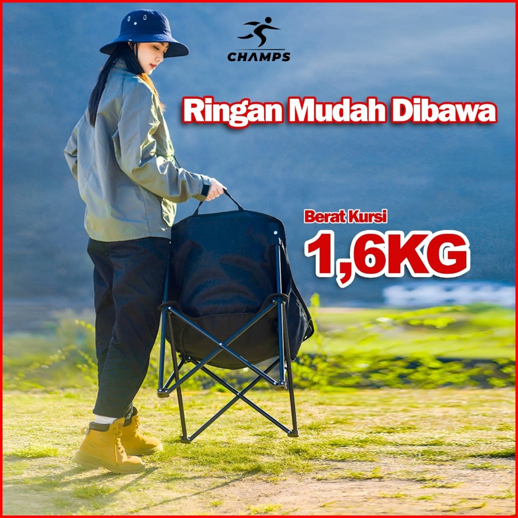 Champs Kursi Lipat Lingkar Murah Kursi Outdoor Bulat Nyaman Kuat Untuk Santai Camping Mancing Free Tas
