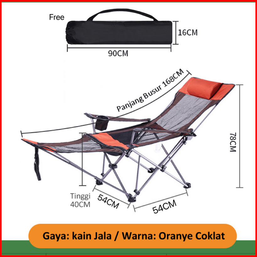 Kursi Lipat Camping Kursi Malas 2in1 Camping Folding Chair Mancing Piknik Outdoor Portable