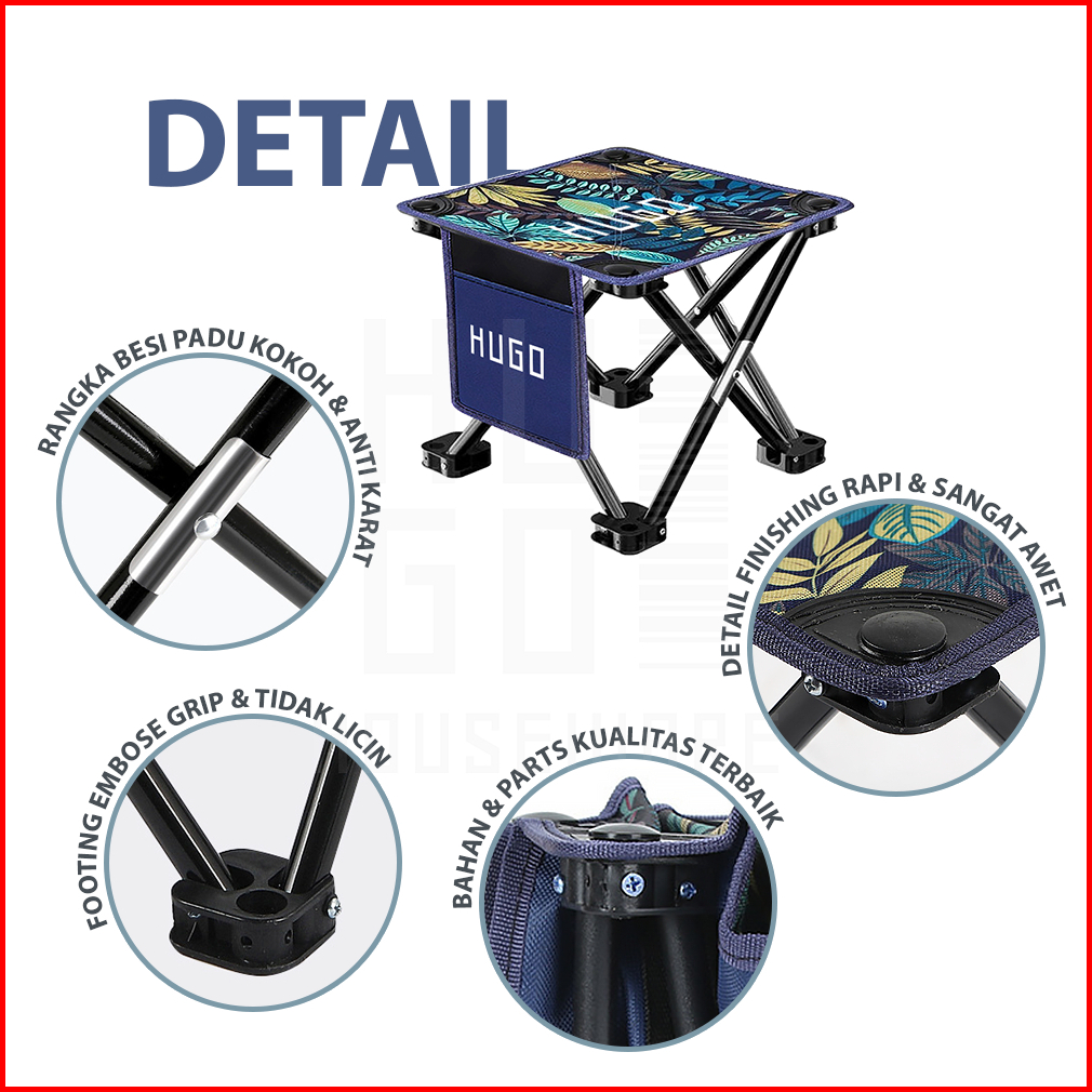 Hugo Bangku Lipat Camping Portable Bangku Lipat Outdoor Mancing Piknik Gunung Serbaguna