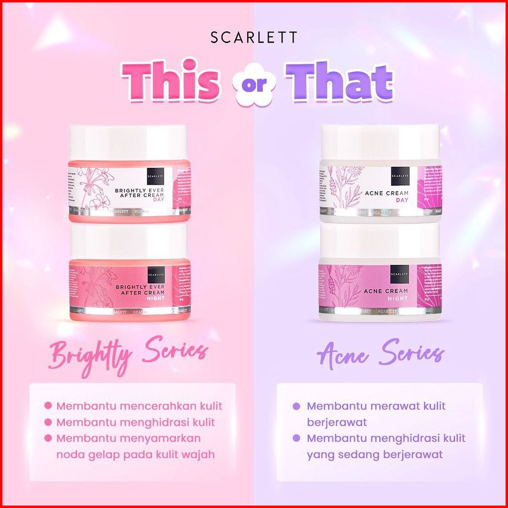 Scarlett Whitening Brightly Ever After Cream Day Night Acne Day Night Cream Krim Wajah Bpom