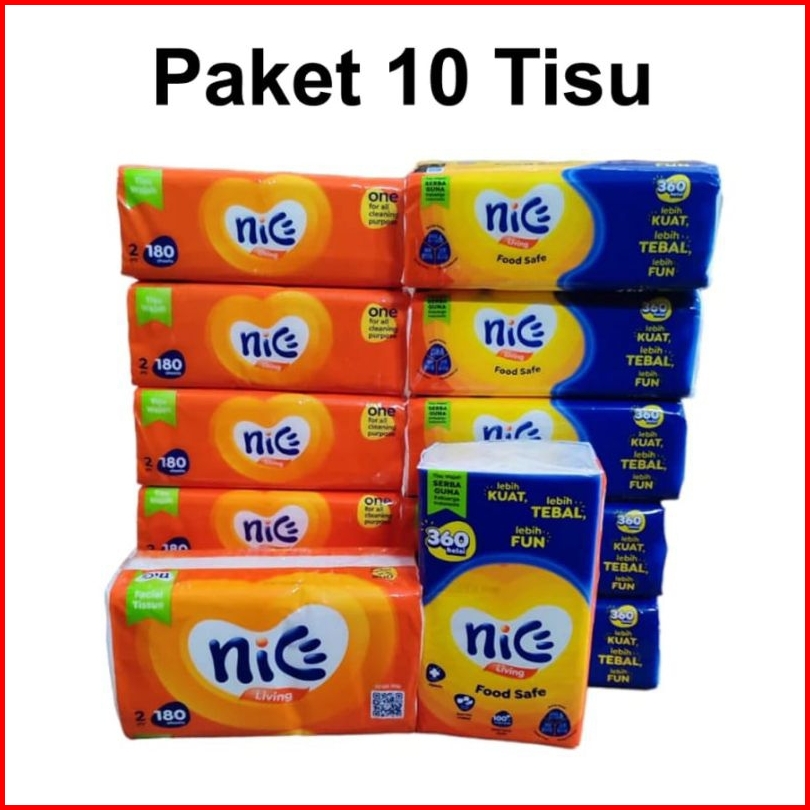 Paket 10 Pcs Nice 360 Helai 180 Sheets 2ply - Tissue Tisu Facial Tisu Mungka Tisu Wajah