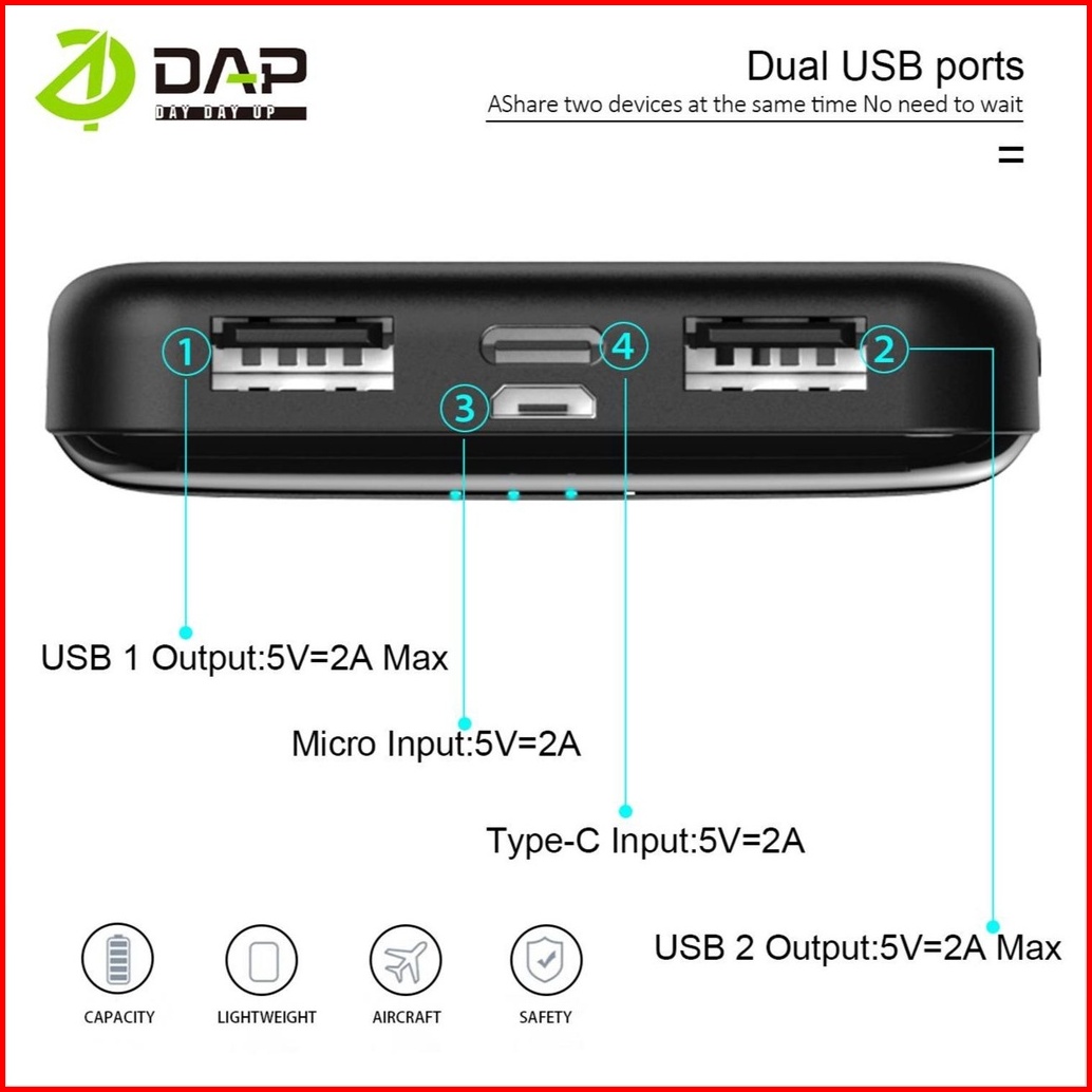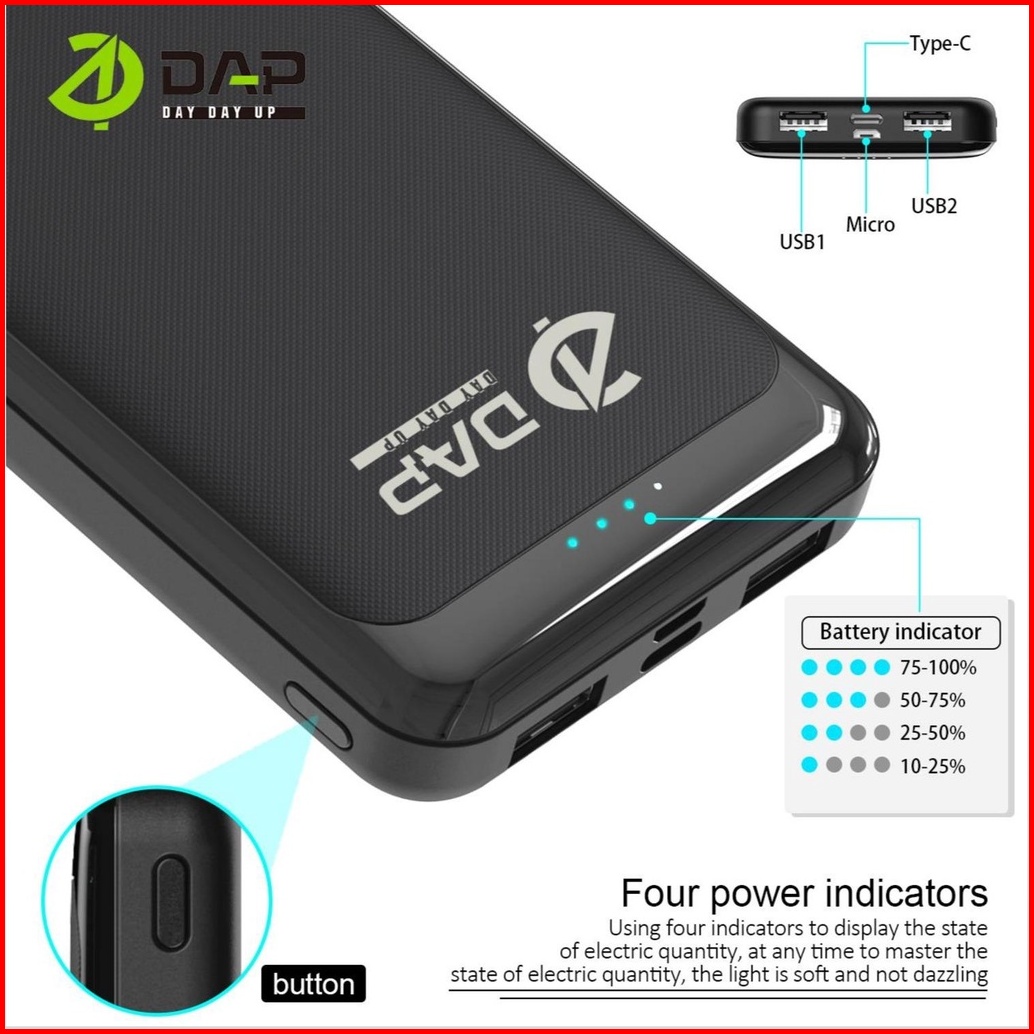Powerbank Dap D-p111 10.000mah 2.4a Dual Input Port Type C Micro Usb - Garansi 1 Tahun