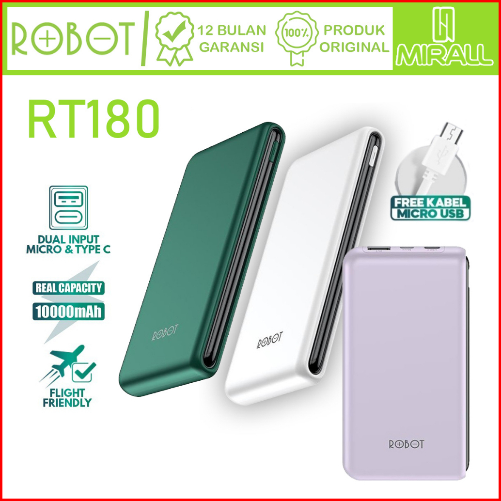 Power Bank Powerbank Robot Rt12 10000mah Rt180 Dual Input Port Type C Micro Usb Original - Garansi Resm