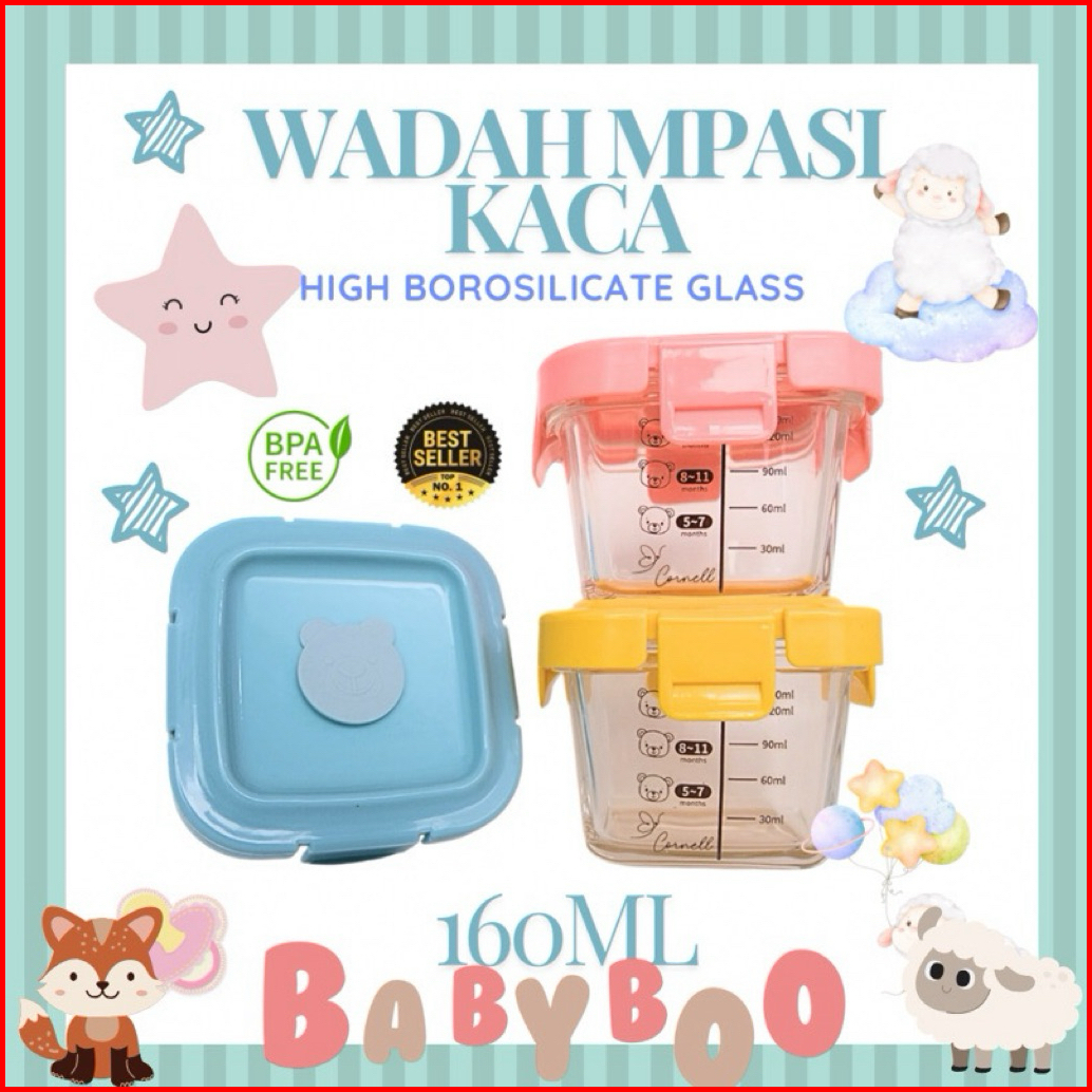 Baby Food Container Tempat Mpasi Kaca 3 In 1 Wadah Mpasi Kaca Isi 3 Penyimpanan Mpasi Glass Baby Food Container Perlengk