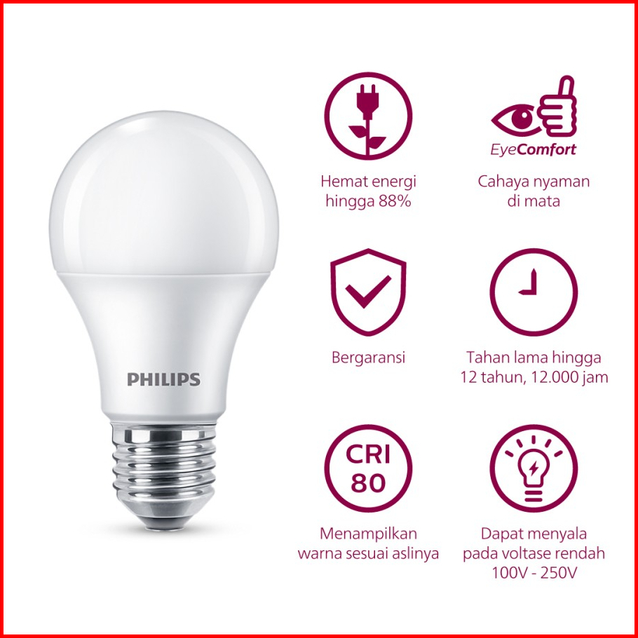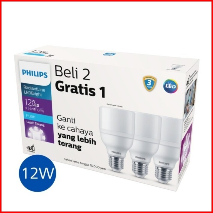 Philips Lampu Led 11w - E27 Cahaya Putih Kemasan 3 1