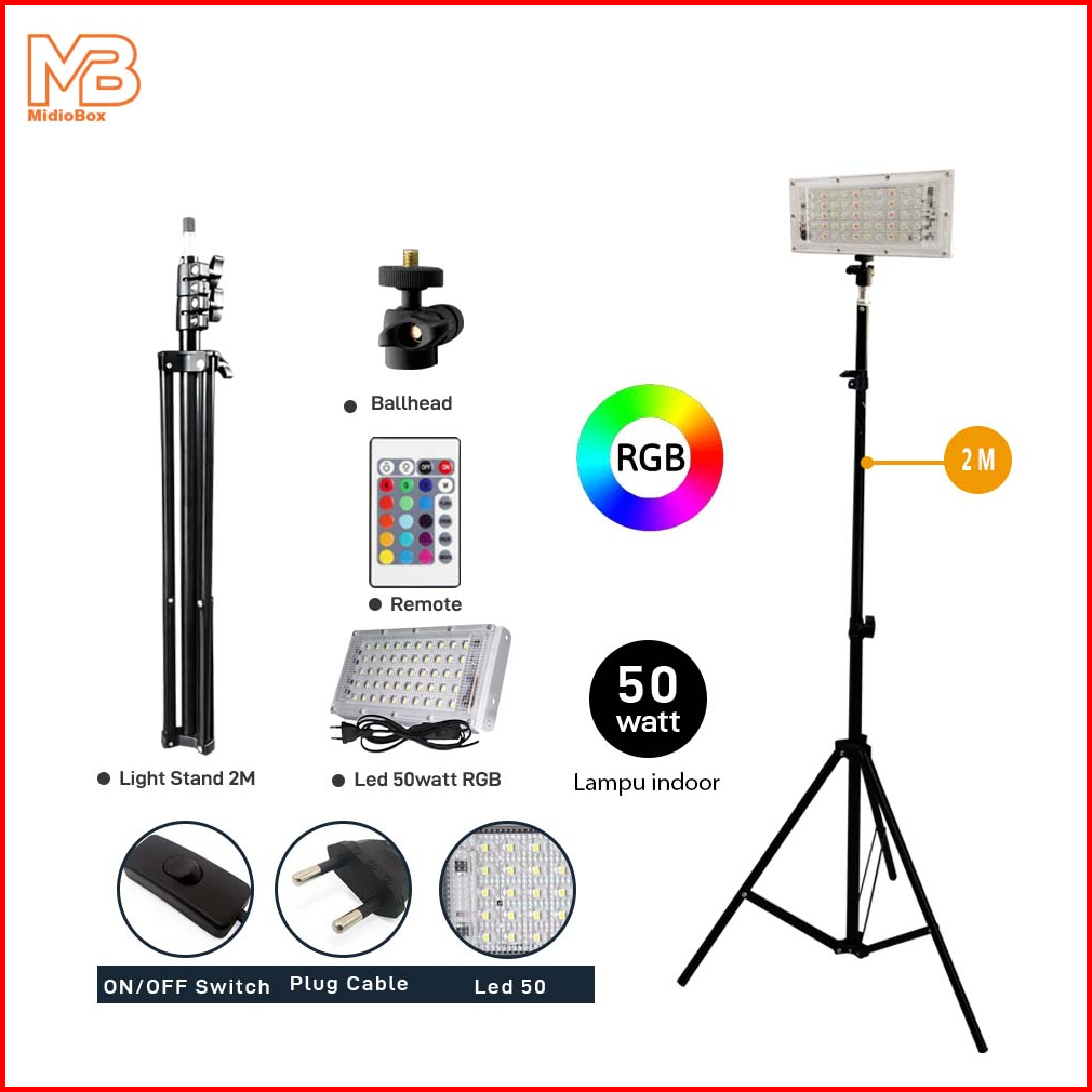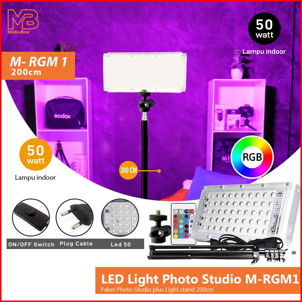 Midio Lampu Lighting Led Rgb Foto Studio M-rgm1 Plus Remote Lighting Studio Foto Rgb Led Plus Tripod Stand Lampu Led