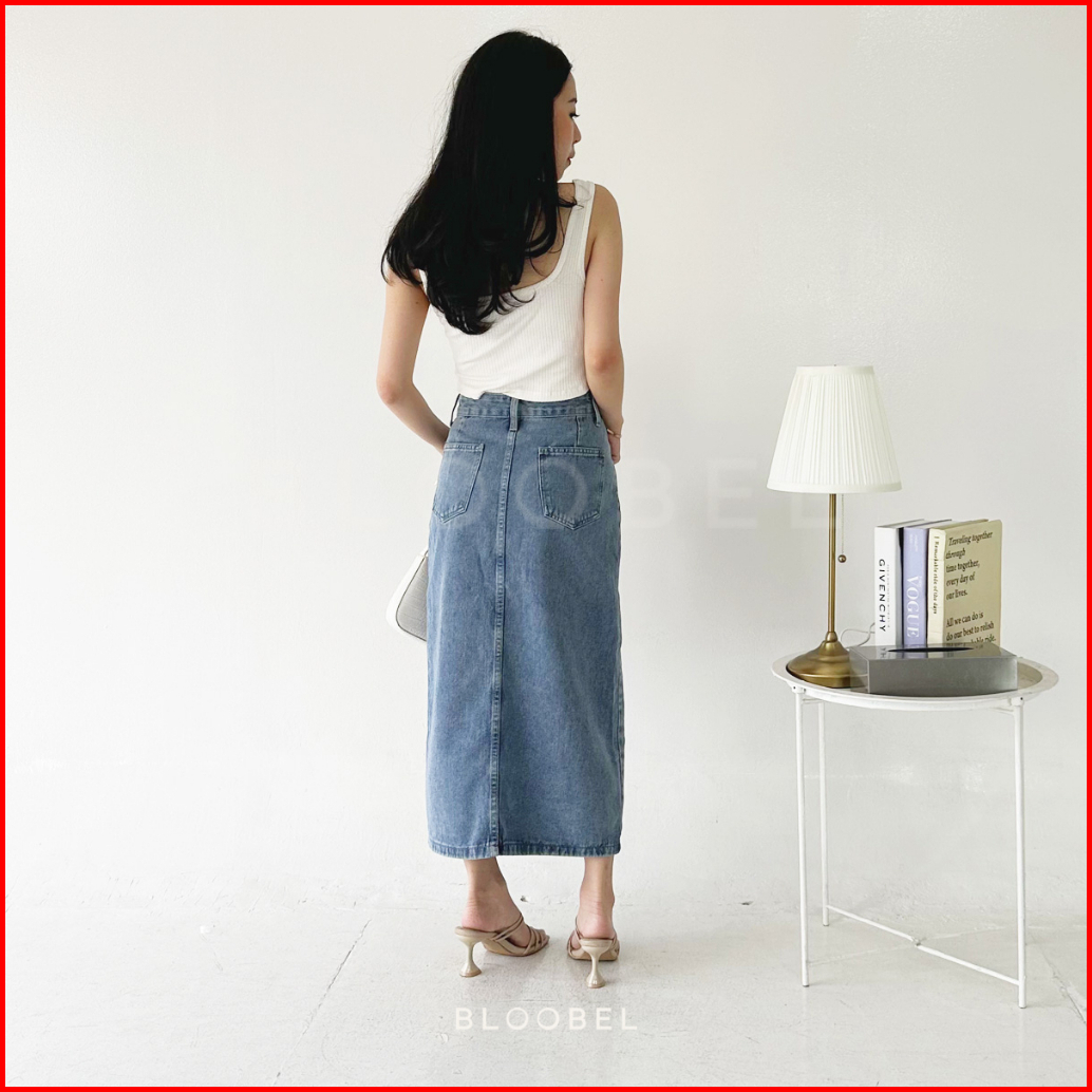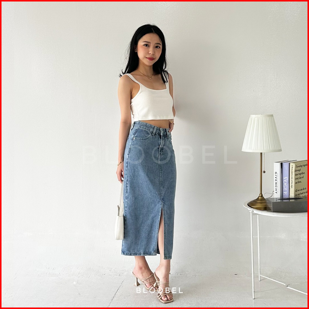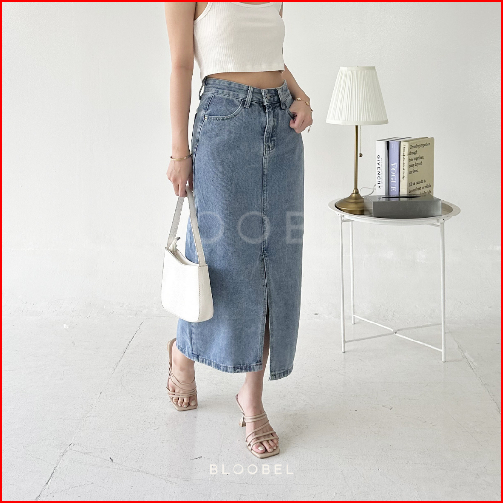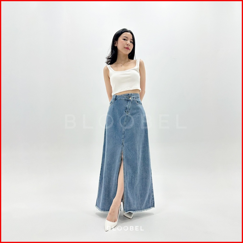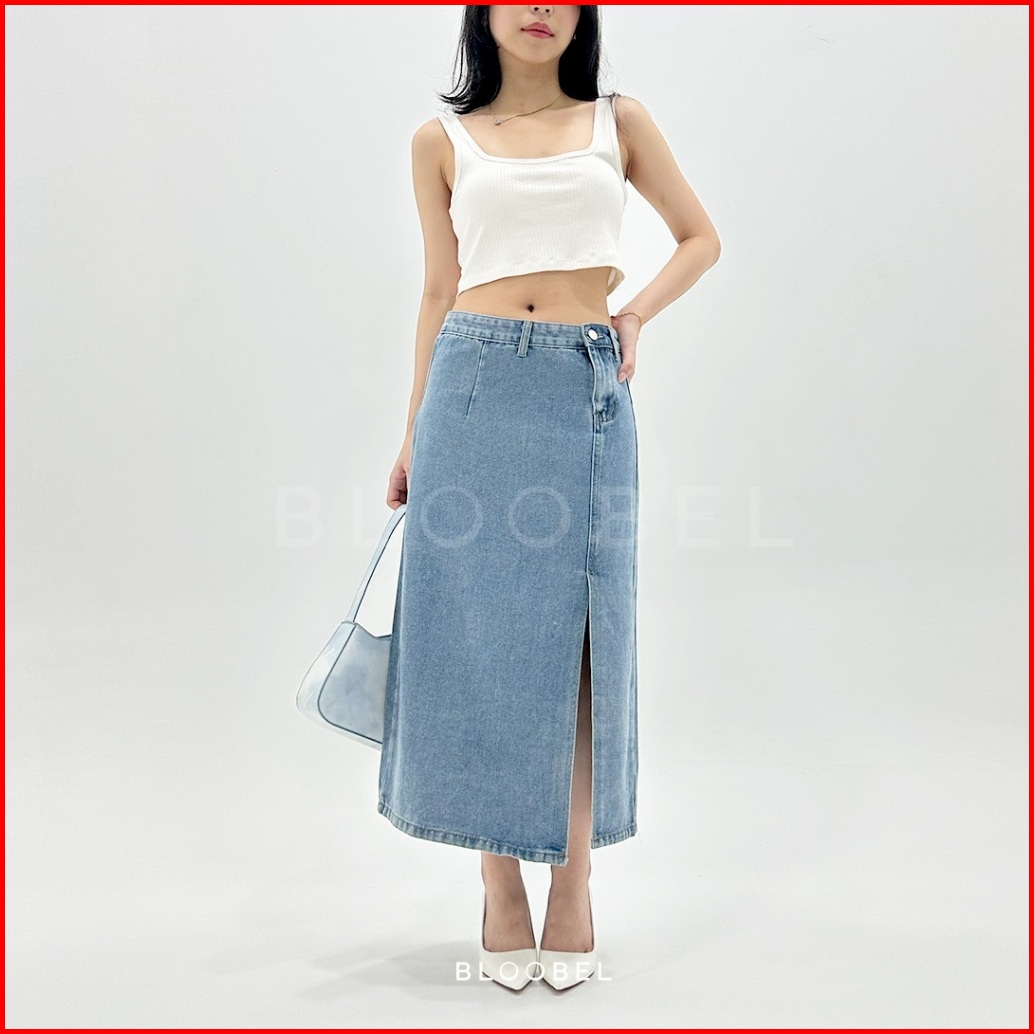 Bloobel - Adele Jeans Skirt Rok045 Midi Skirt Jeans Rok Jeans Wanita Rok Denim Bawahan Wanita Rok Panjang Wanita Slit Sa