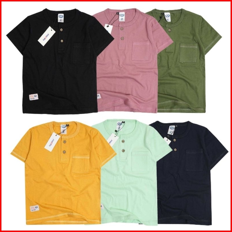 Kokotosaka Kaos Hanley Polos Kancing Saku Tangan Pendek Anak Laki-laki Perempuan Baju Kaos Hanley Tangan Pendek Anak Uni