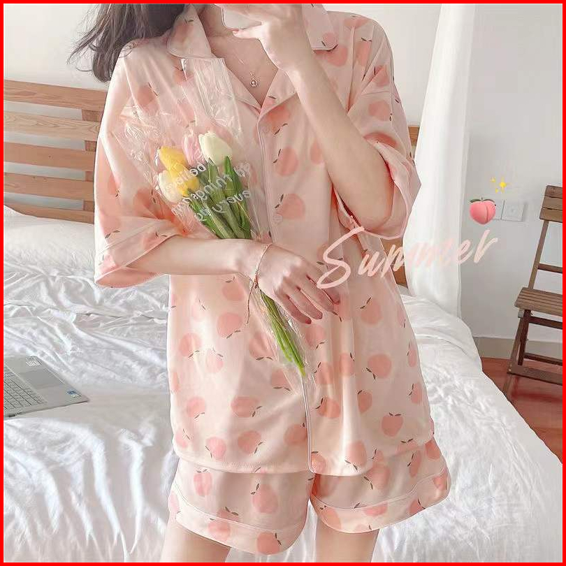 Baju Tidur Kancing Kerah Kemeja Korea Piyama Pajama Set Import Hp