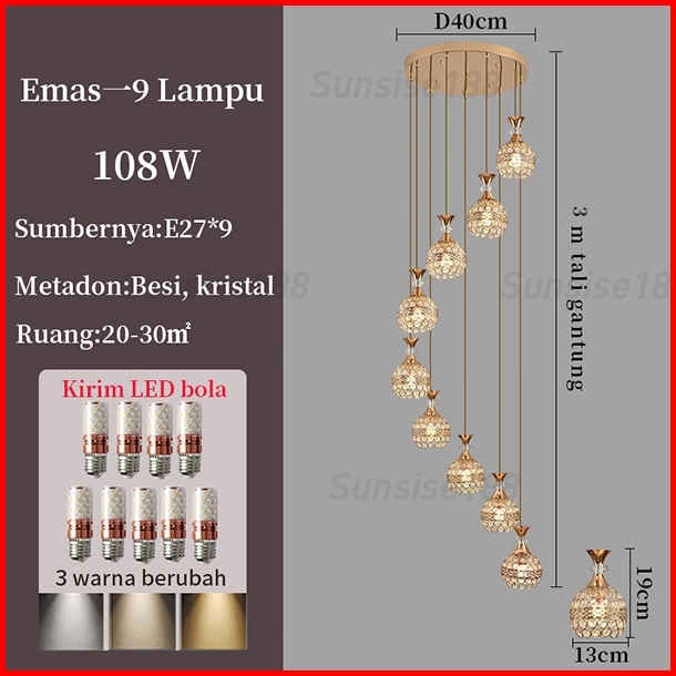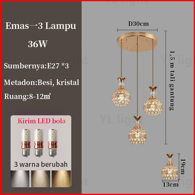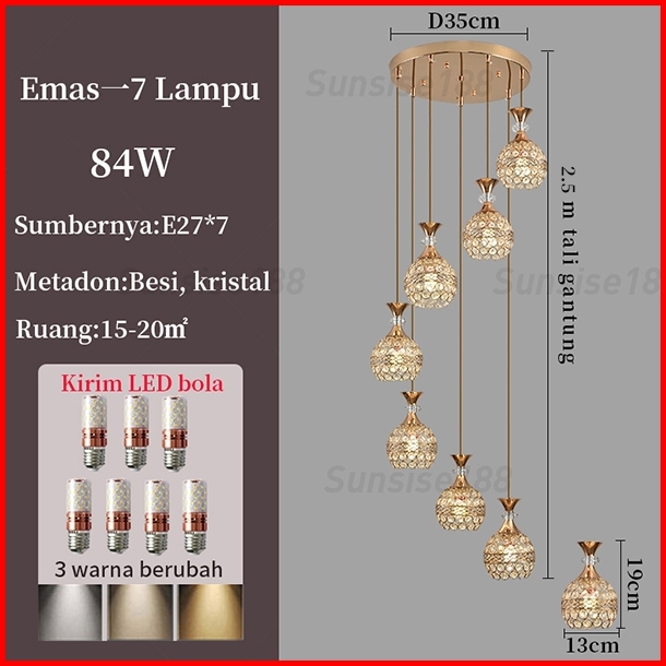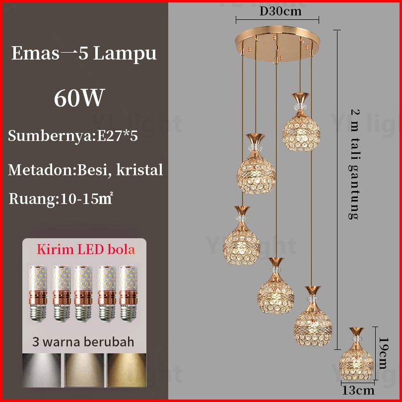 Lampu Restoran Lampu Gantung Tangga Kristal Lampu Hias Kamar Tidur Lampu Rumah Ruang Tamu Led