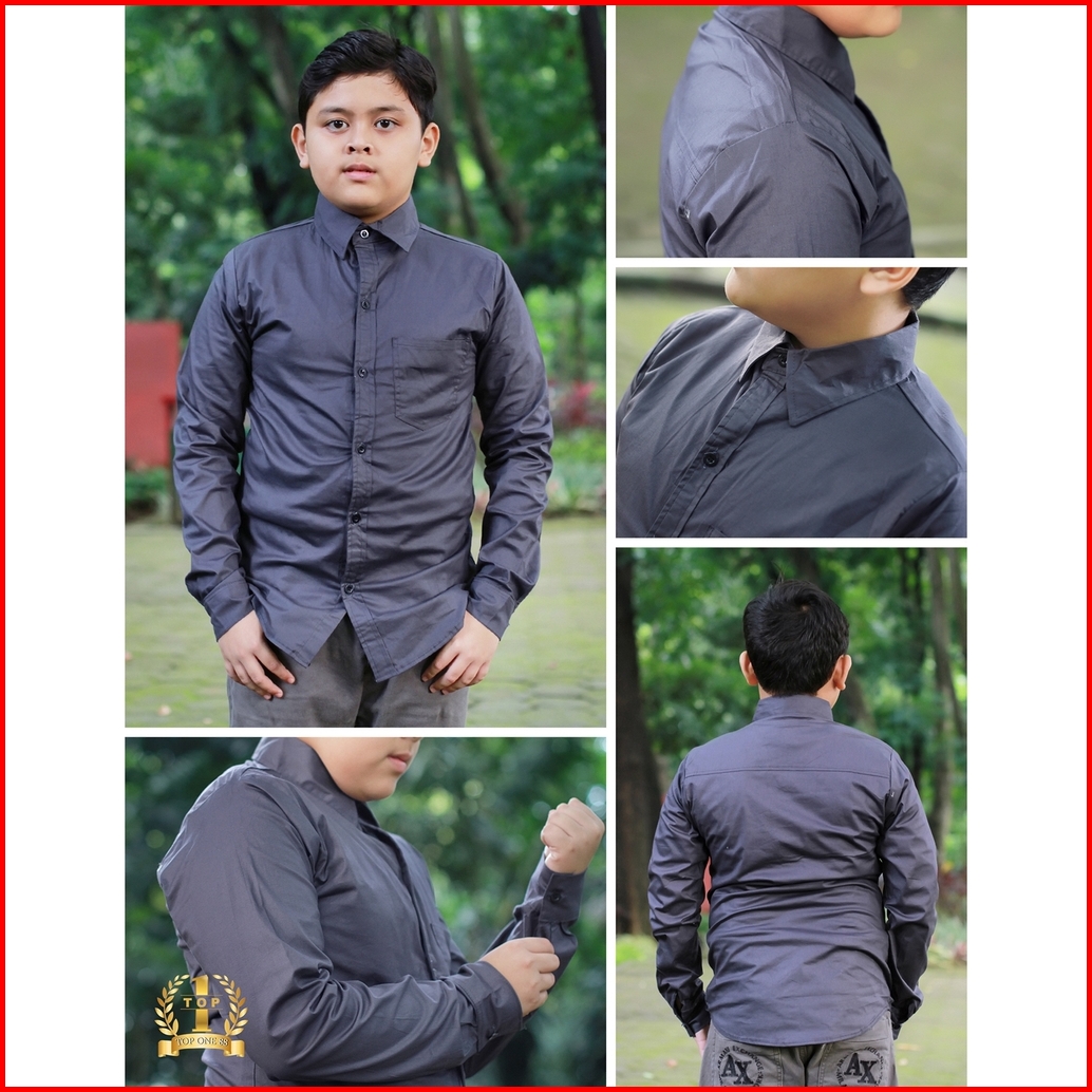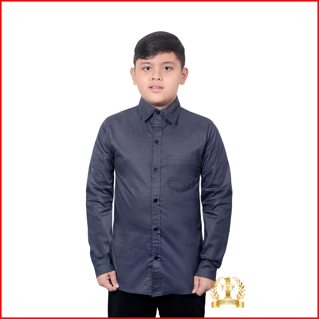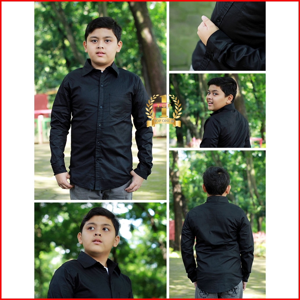 Luckyone Baju Kemeja Lengan Panjang Katun Stretch Anak Laki Laki Usia Tanggung Hitam Putih