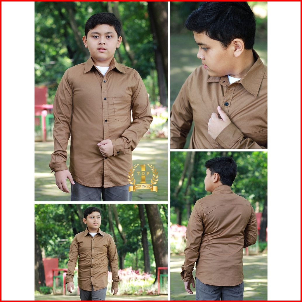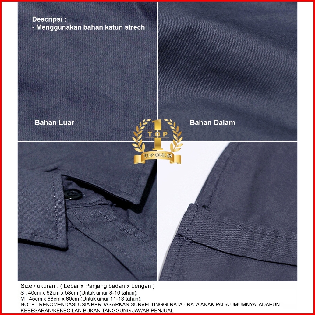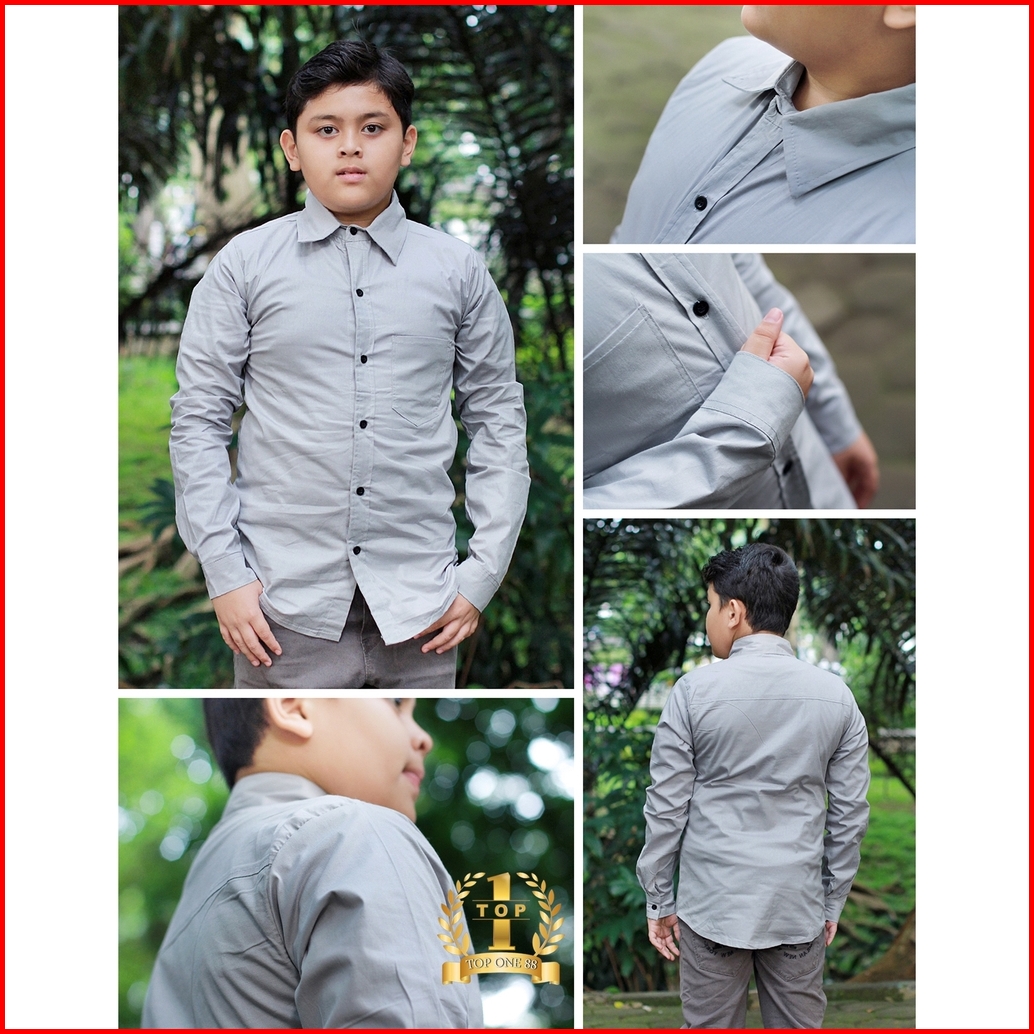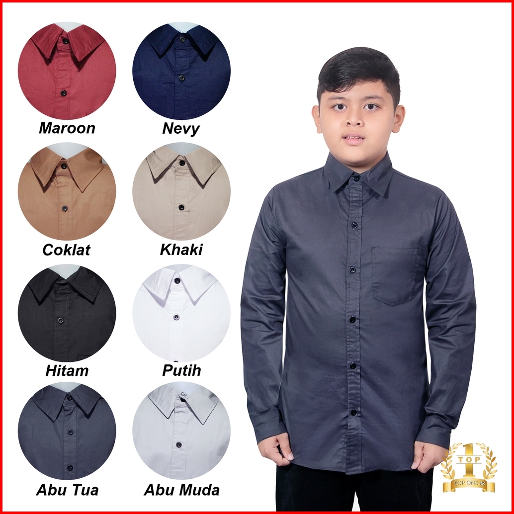 Luckyone Baju Kemeja Lengan Panjang Katun Stretch Anak Laki Laki Usia Tanggung Hitam Putih