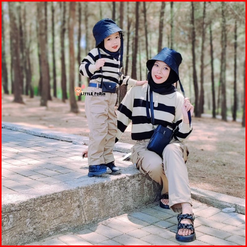 Little Porin - Sweater Rajut Polo Blaster Couple Anak Dan Ibu - Sweter Anak Cewe Cowo