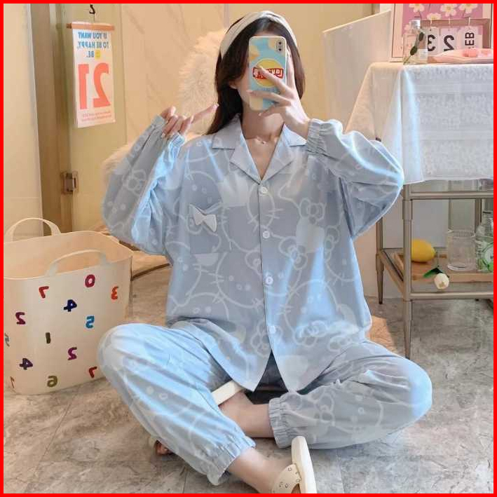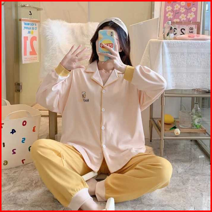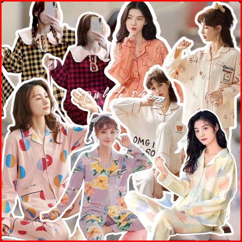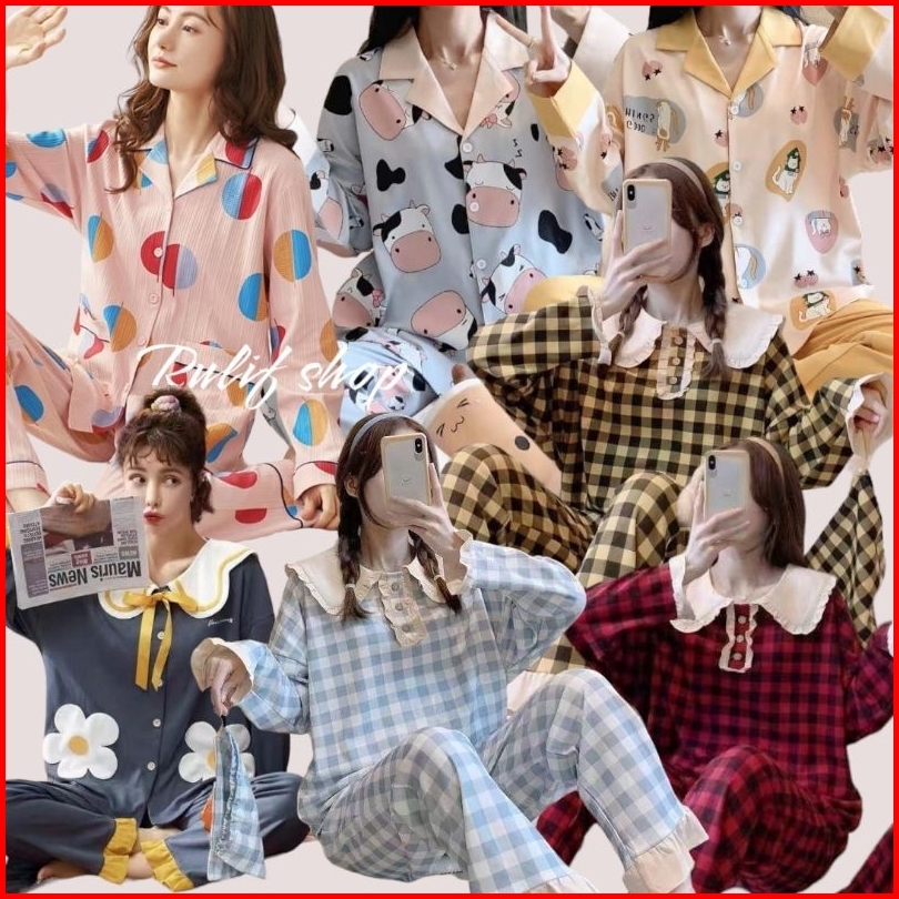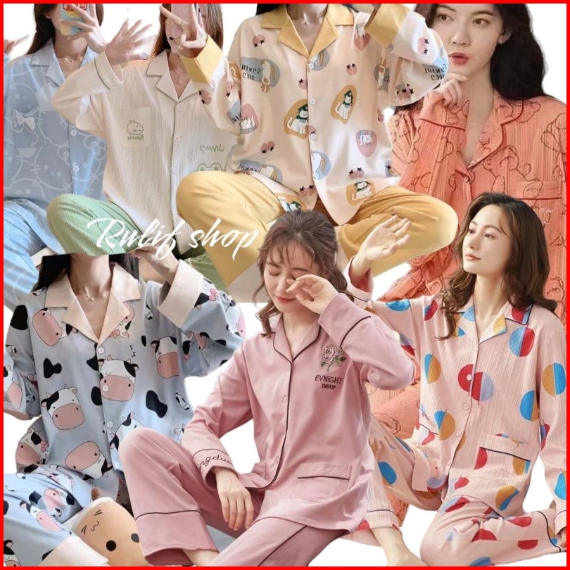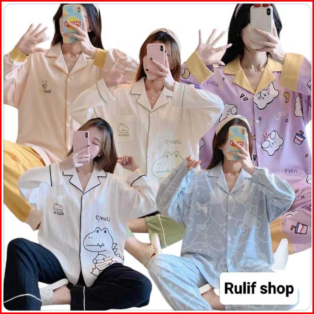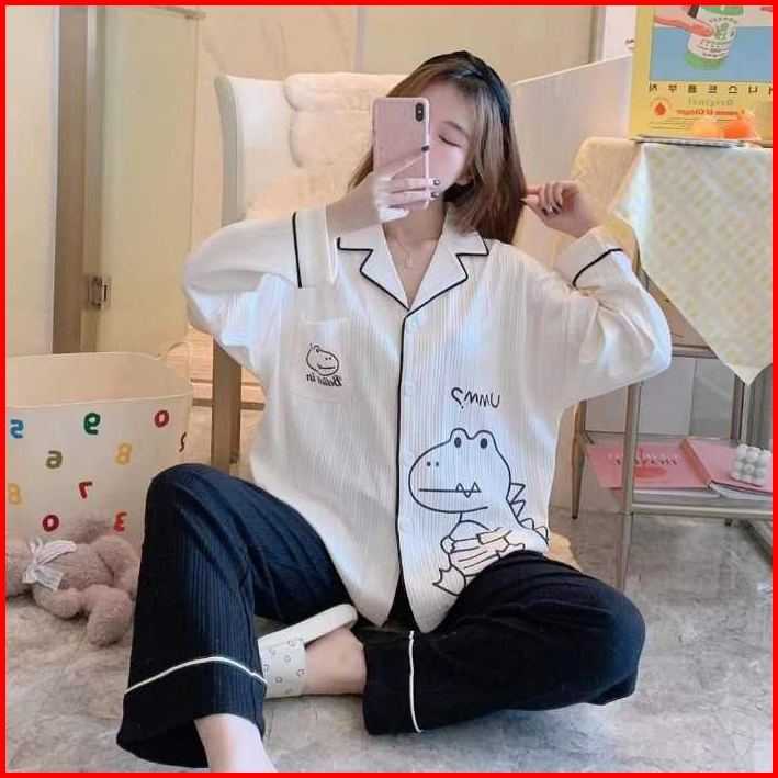 Piyama Wanita Pp Krah Dino Girl Kancing Import Setelan Baju Tidur Wanita Lengan Panjang Celana Panjang