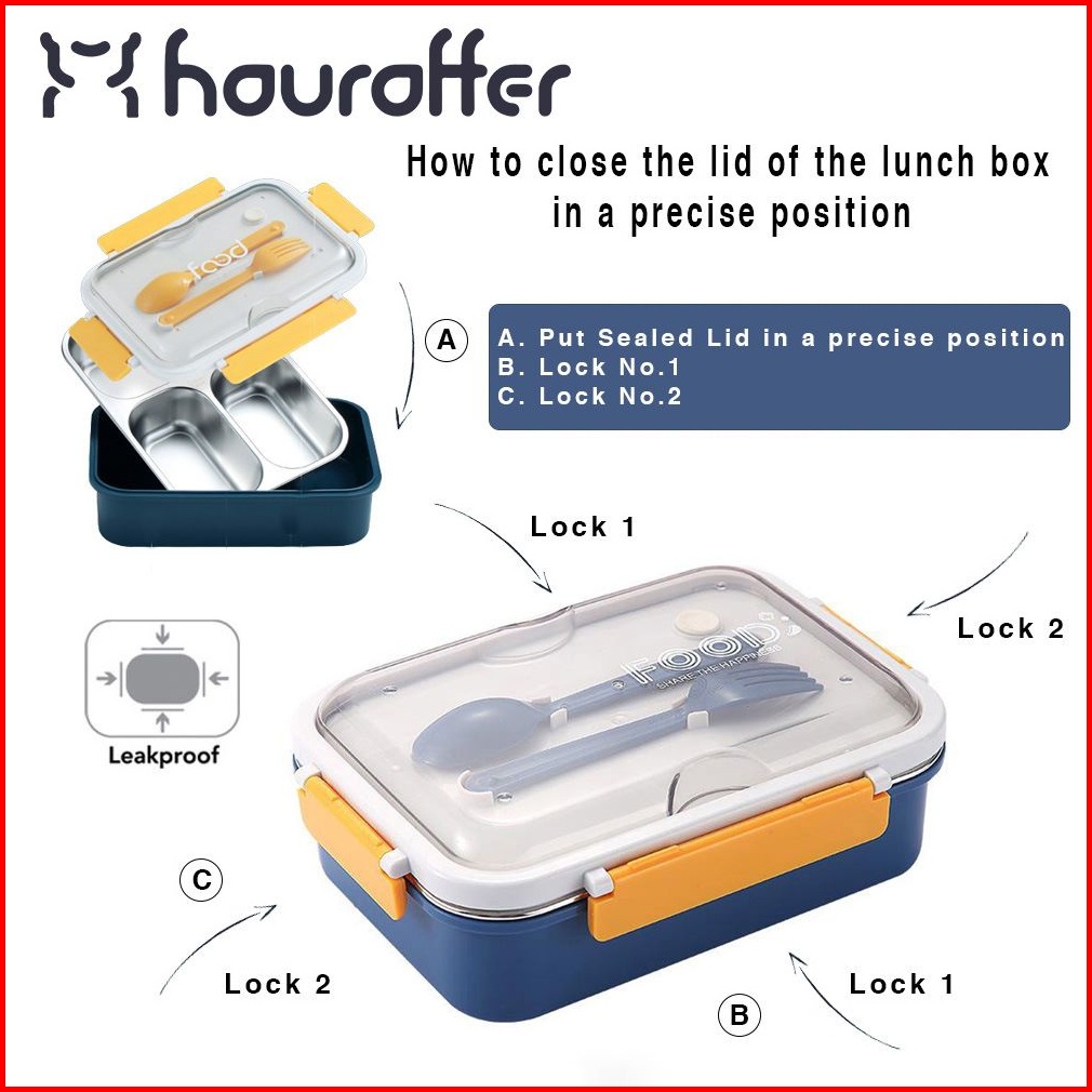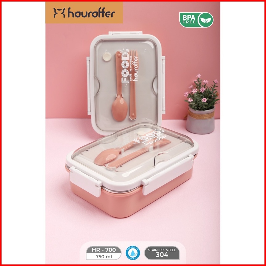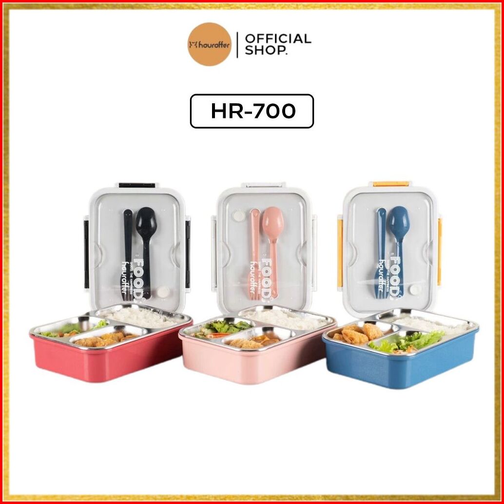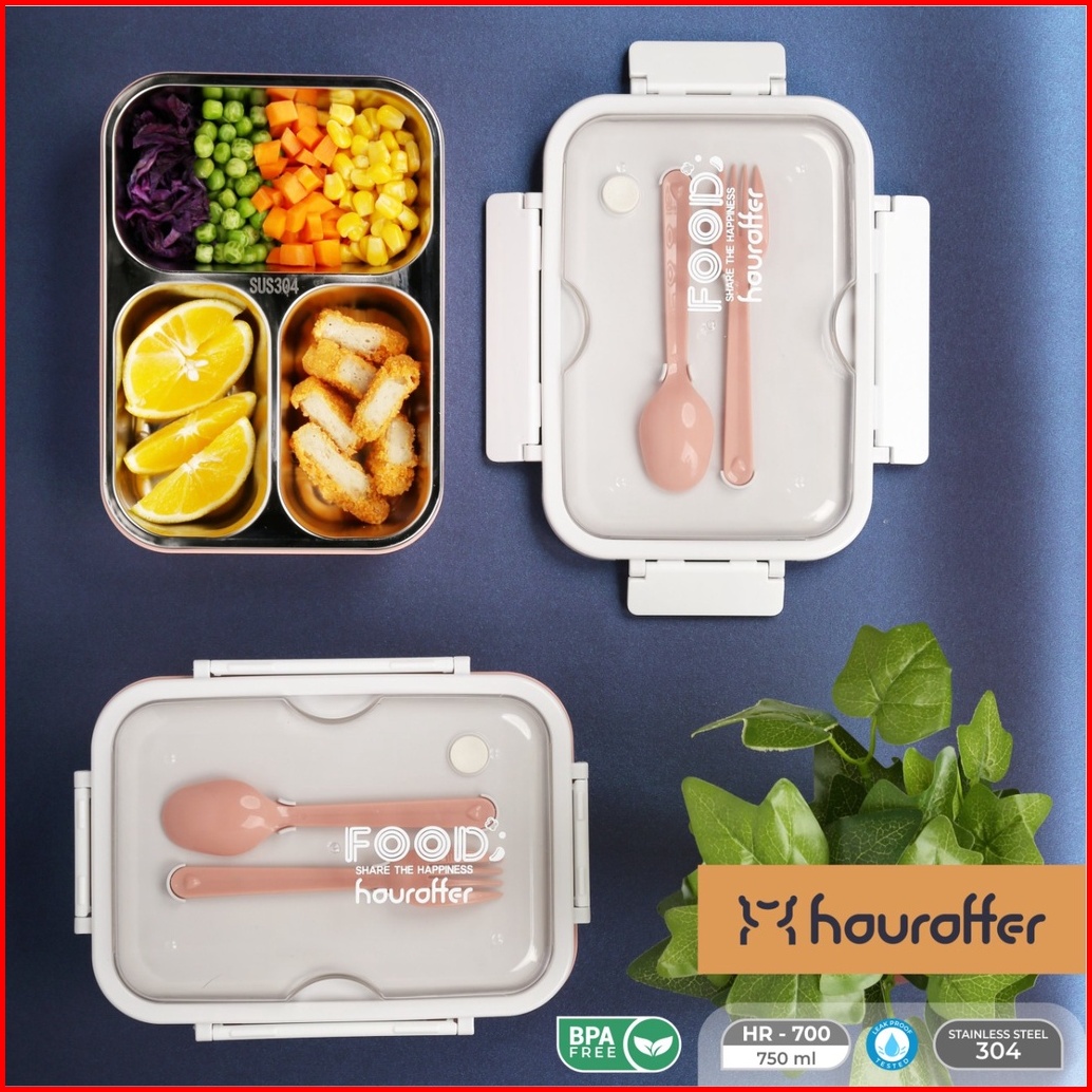 Houroffer Kotak Makan Luncbox Hr-700 Kotak Bekal 3 Sekat Anti Tumpah 750ml Include Sendok Garpu