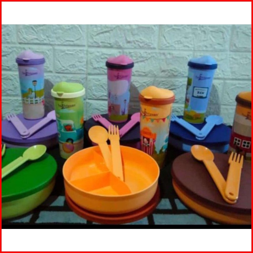 Twin Tulipware Paket Bekal Anak Komplit Junior Round Kidztalltumbler Spoon Fork