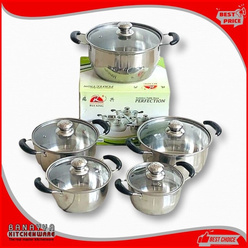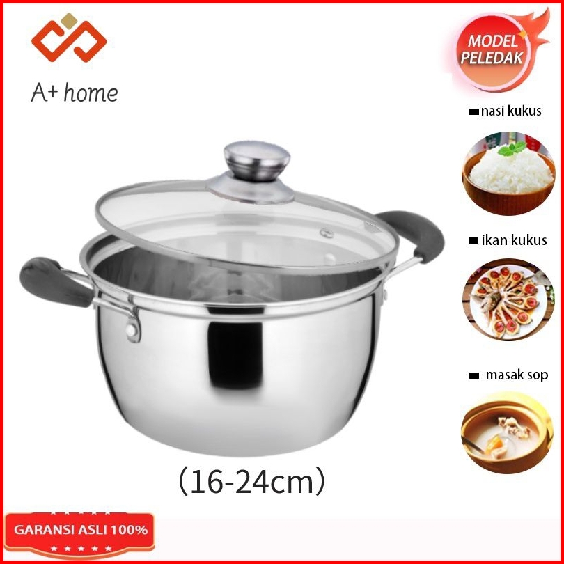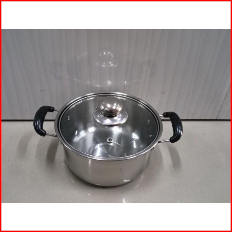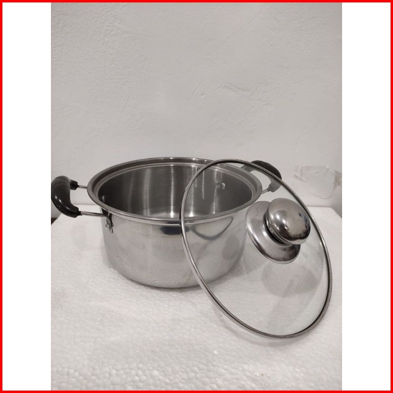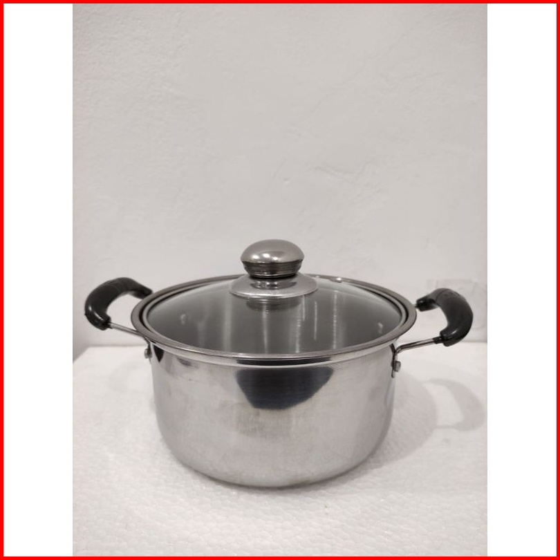 Panci Susu Kuping Dutch Oven Tutup Kaca Stainless Steel Ukuran 16-24cm