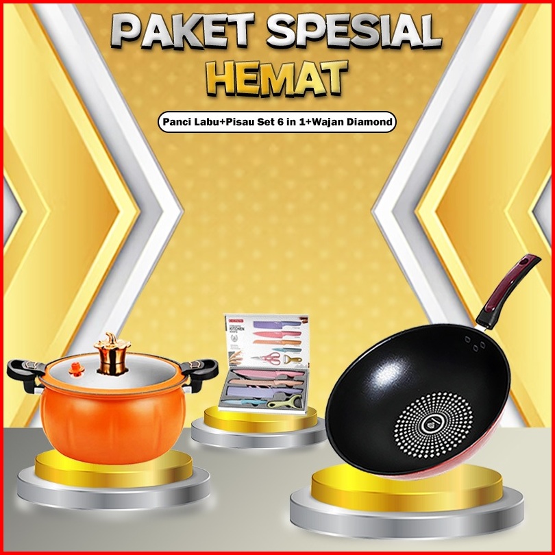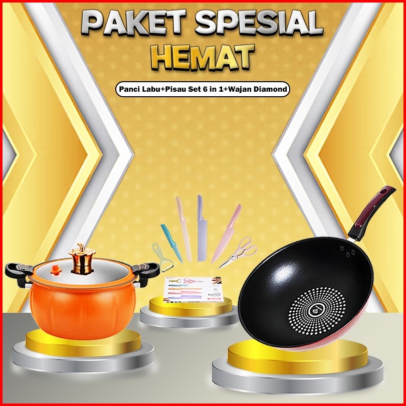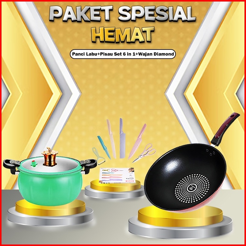 Ss Paket Super Besar Hemat Lebaran Sale Panci Presto Labu 7.5 Liter Wajan Diamond Penggorengan 32cm Pisau Set 6in1
