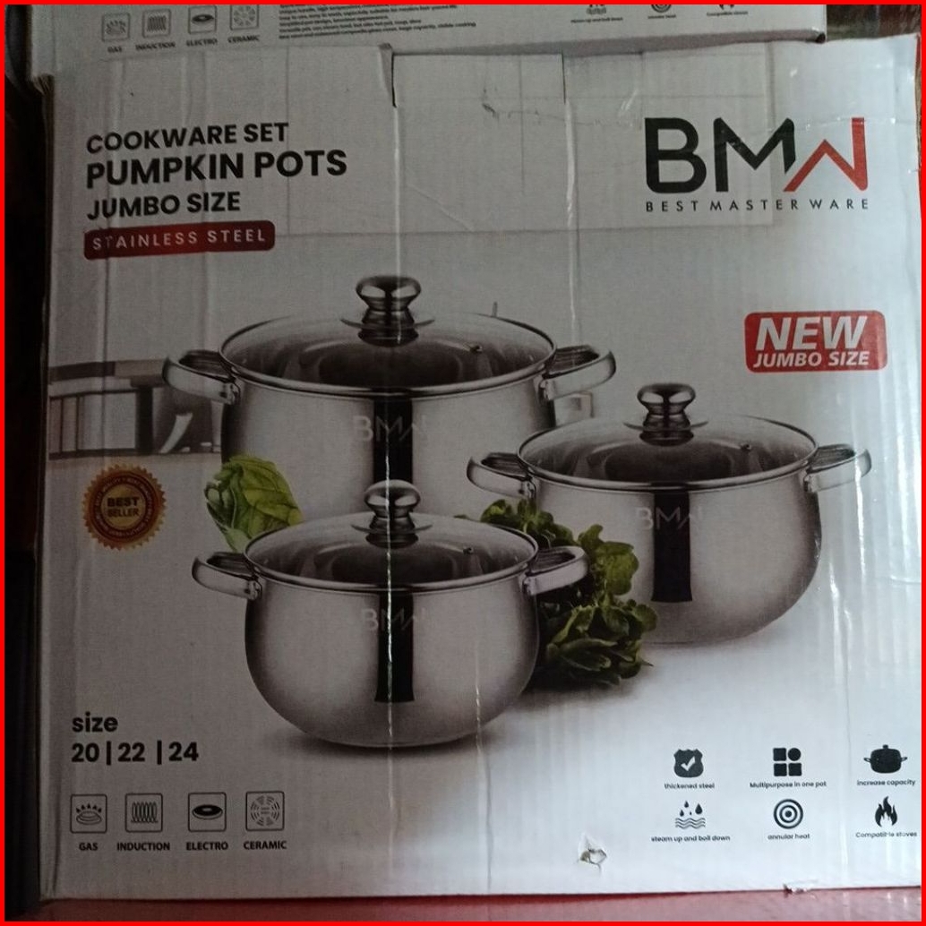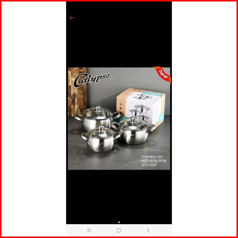 Panci Soup Calypso Set Berkualitas Isi 3pcs Tutup Kaca Tebal Stainless