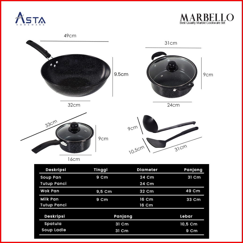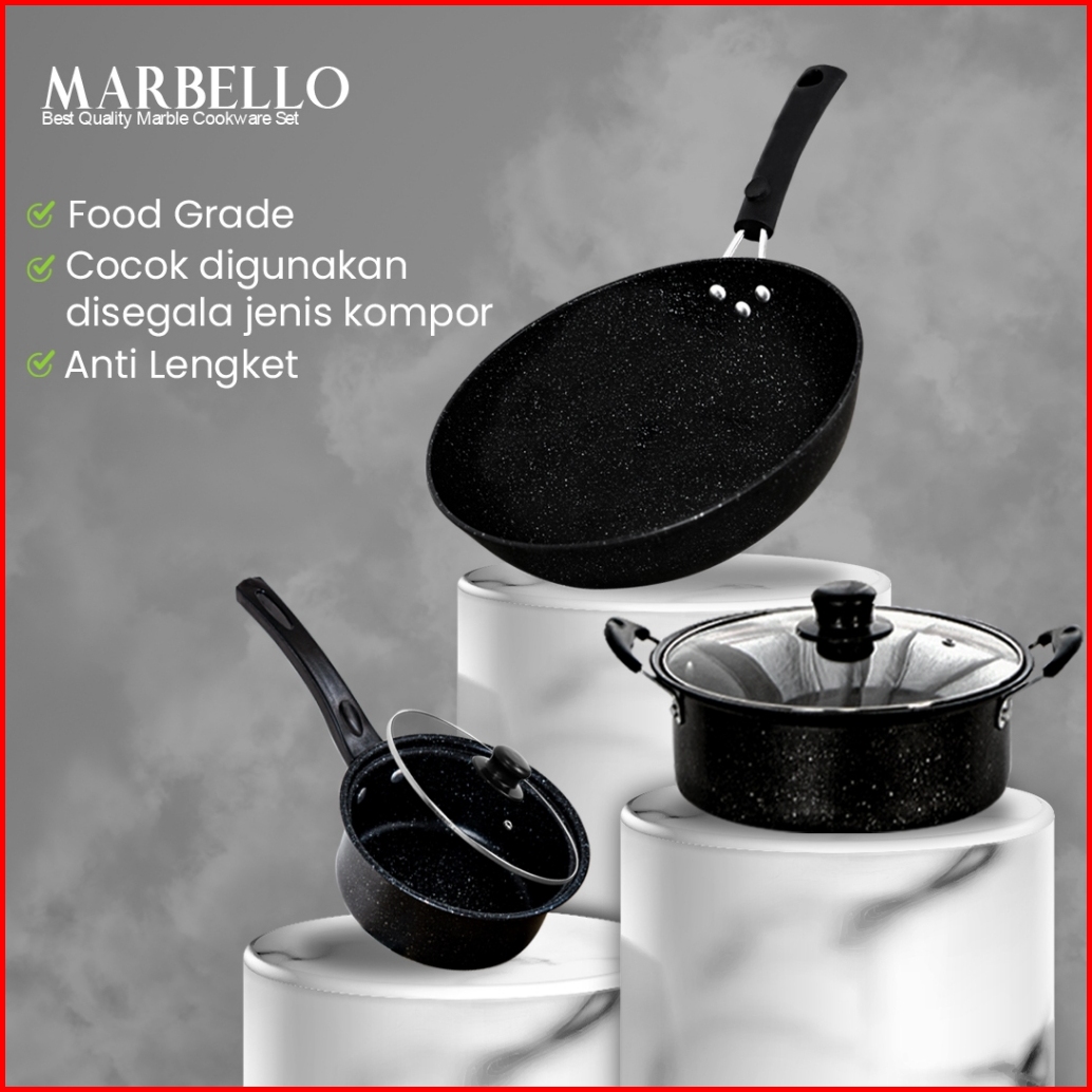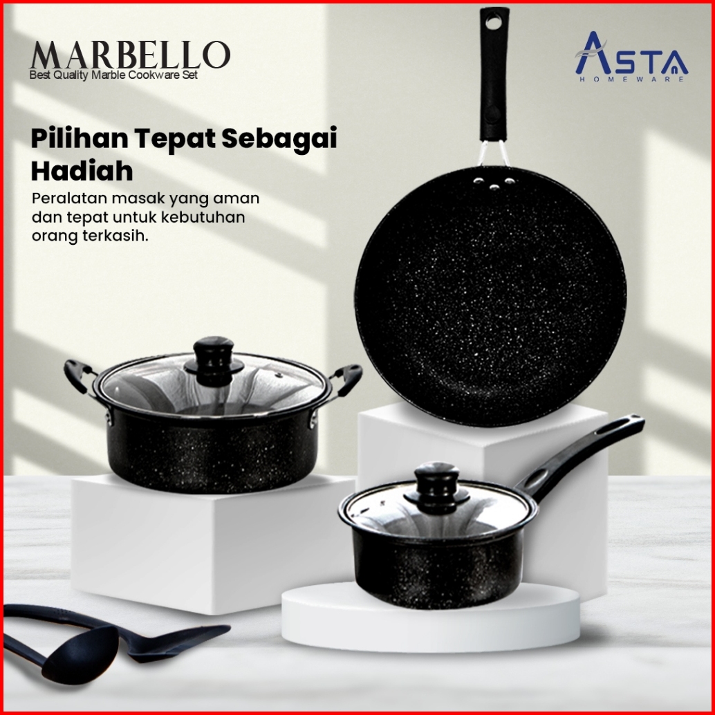 Asta Panci Set Marbello Lengkap 7 Pcs Anti Lengket Kitchen Set Wajan Anti Lengket Cookware
