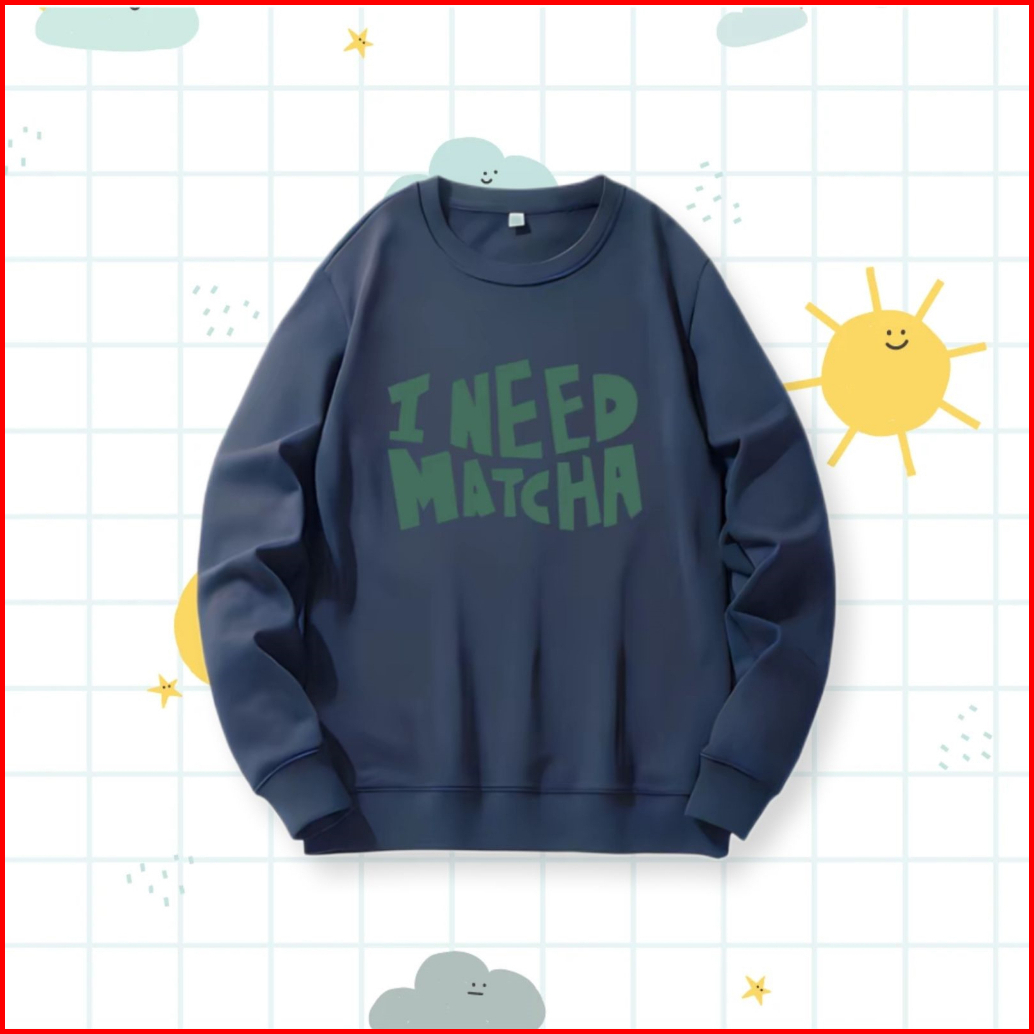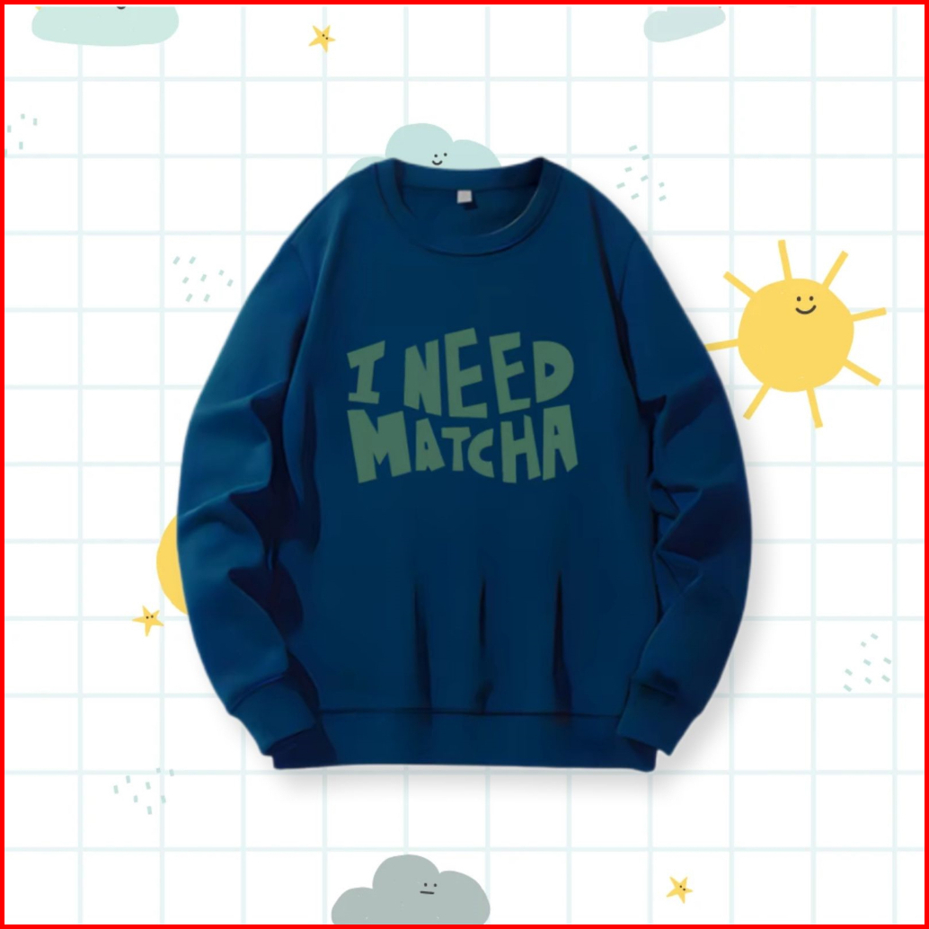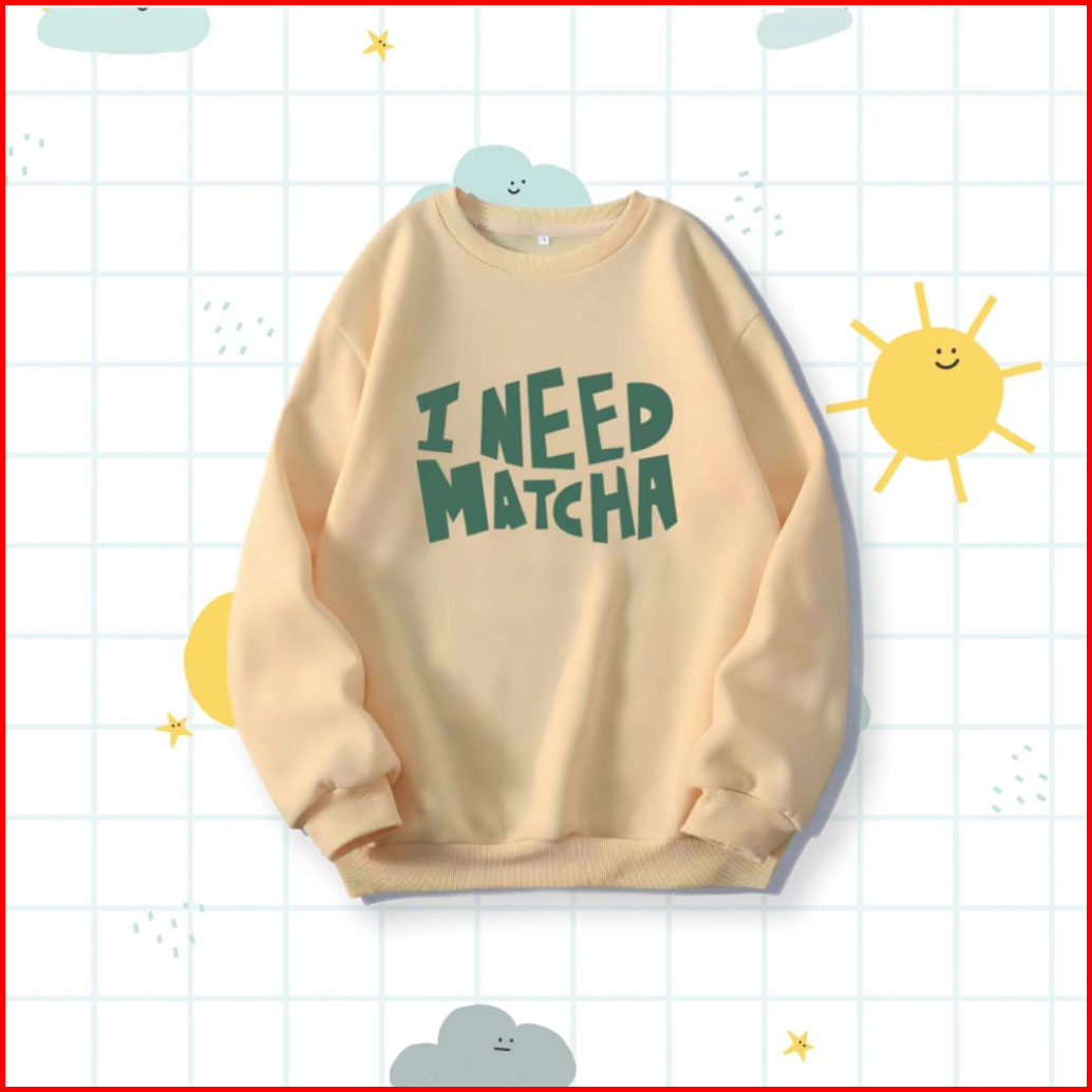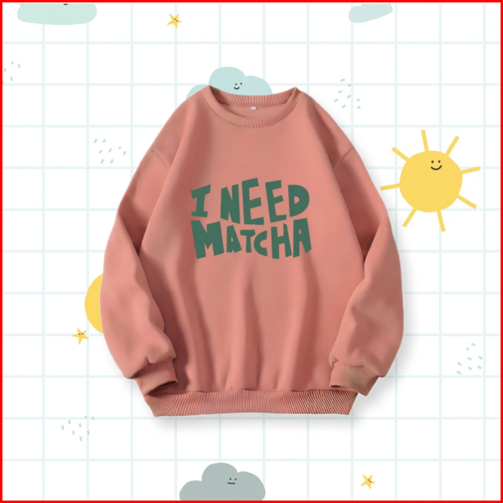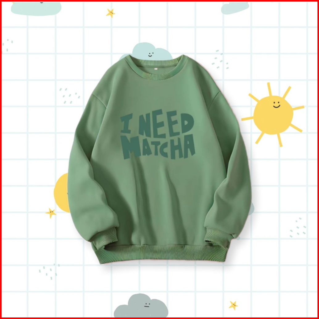 Rag Clothes Sweater Crewneck Anak I Need Matcha Usia 5-15 Tahun Jaket Anak Perempuan Bahan Fleece