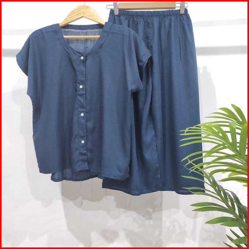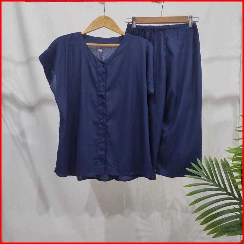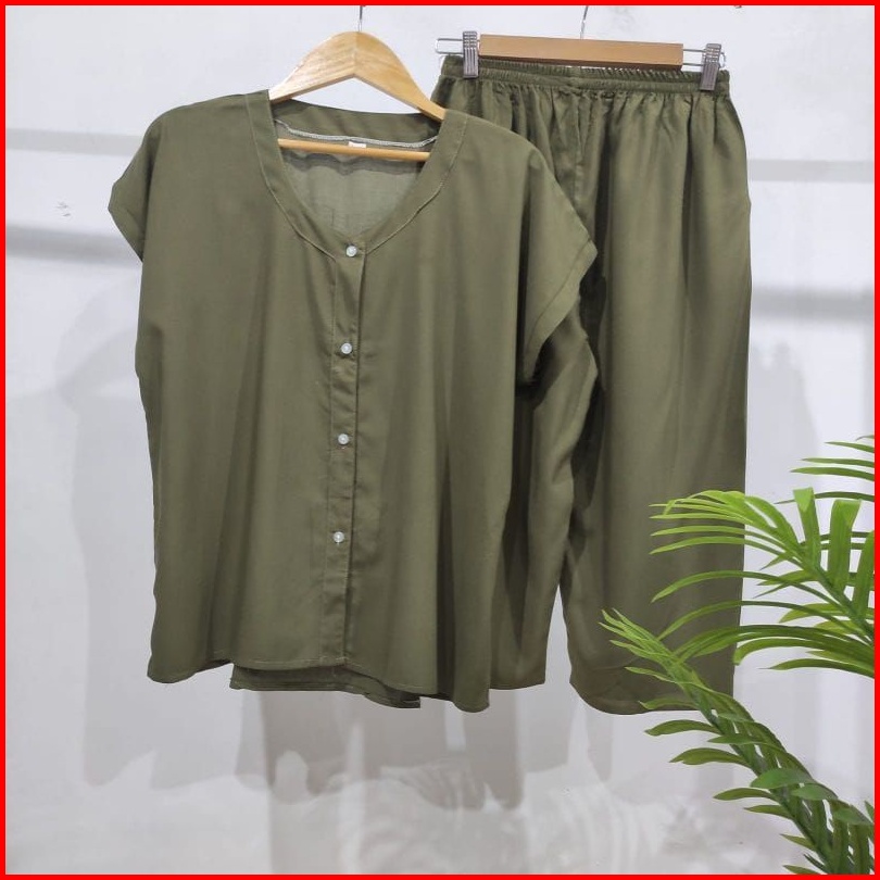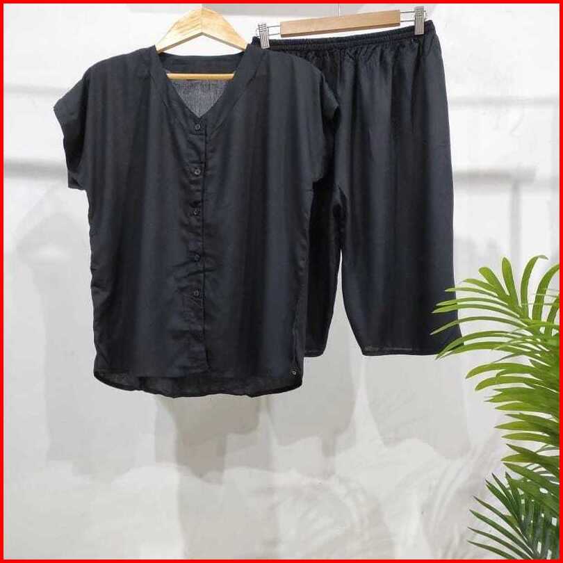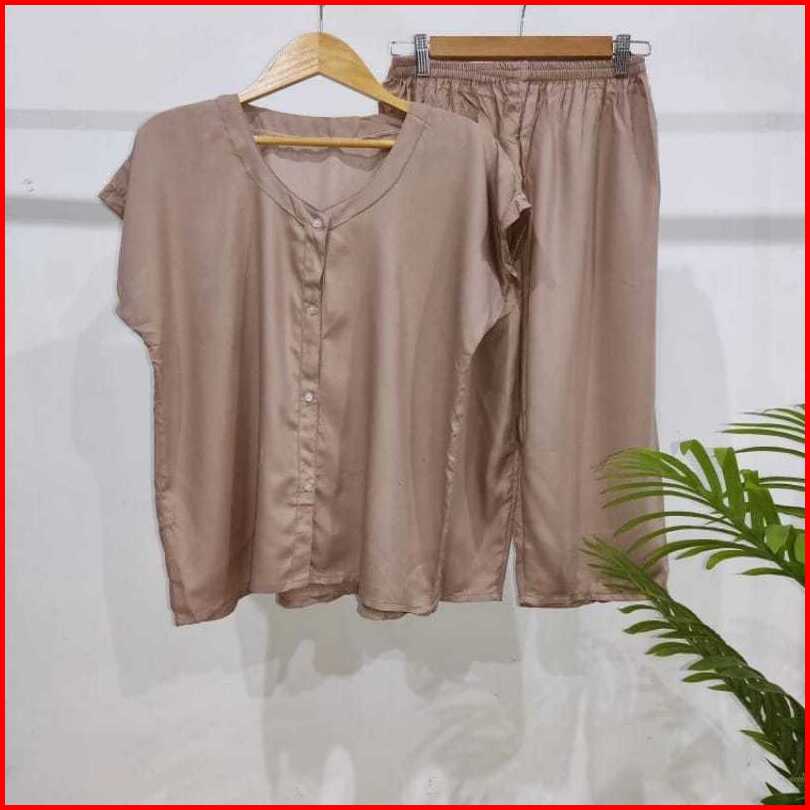 Setelan Polos Kancing 7 8 Setelan Busui Homewear Busui Piyama Rayon