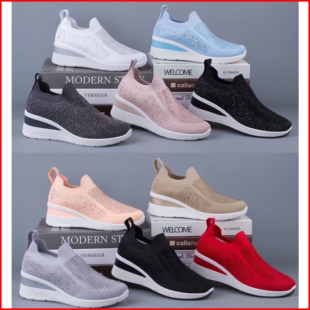 M M Sepatu Sneakers Wanita Tanpa Tali Flyknit Fashion Korea Casual Sport Shoes 806