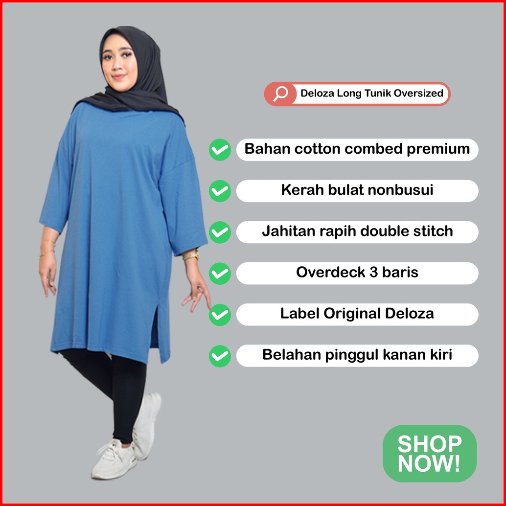 Deloza Long Tunik Oversized Kaos Polos Midi Dress Jumbo