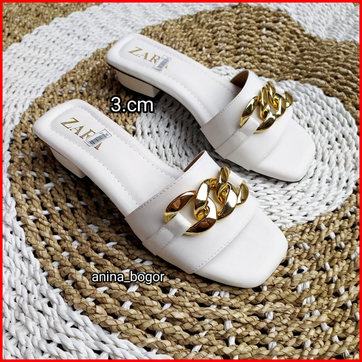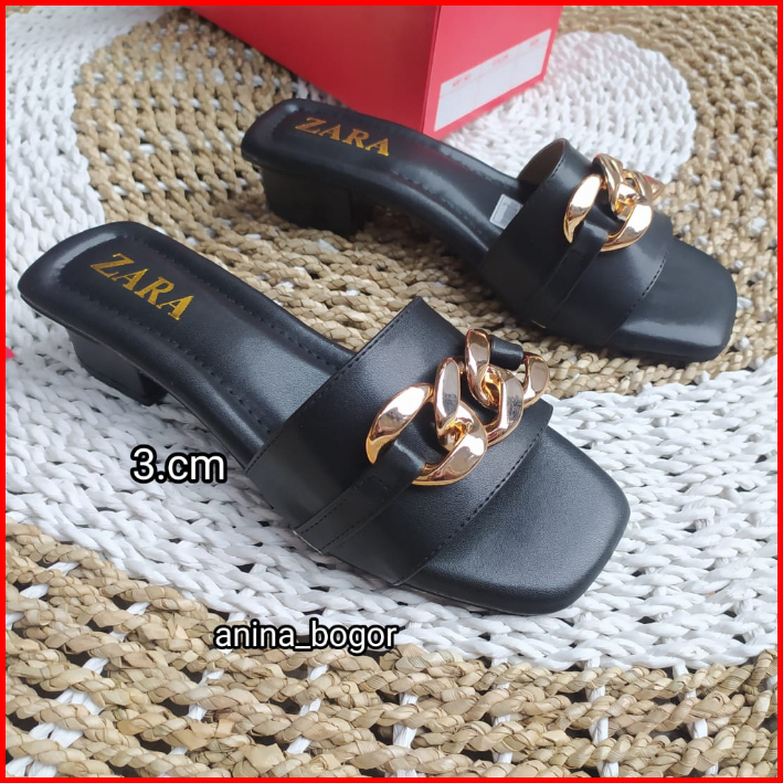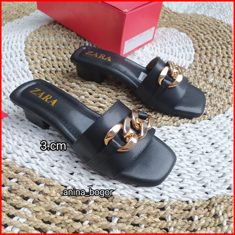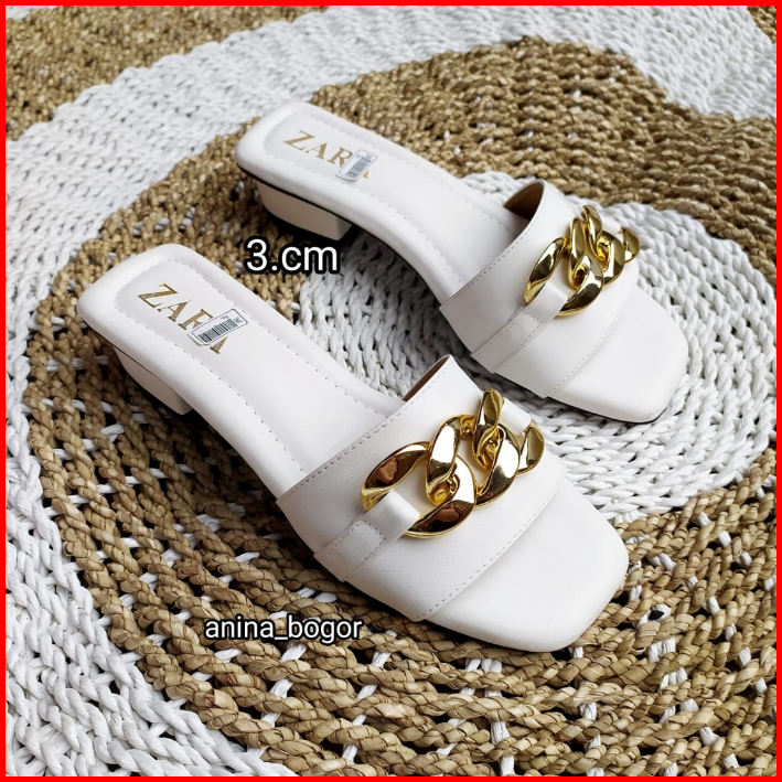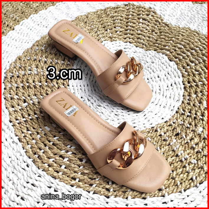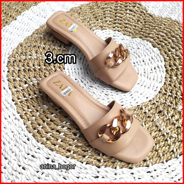 Sandal Selop Heel 3 Cm Zr-012 Sandal Selop Heel Wanita Motif Rantai Sandal Nyaman Di Kaki Karna Menggunakan Lapisan Busa