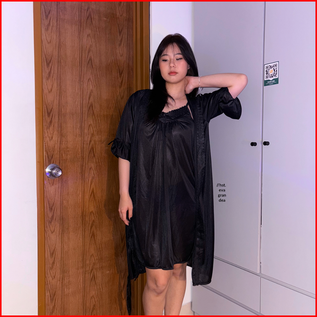 Kimono Tidur Hst - Elegant Look Authentic Black Panam Two-piece Set