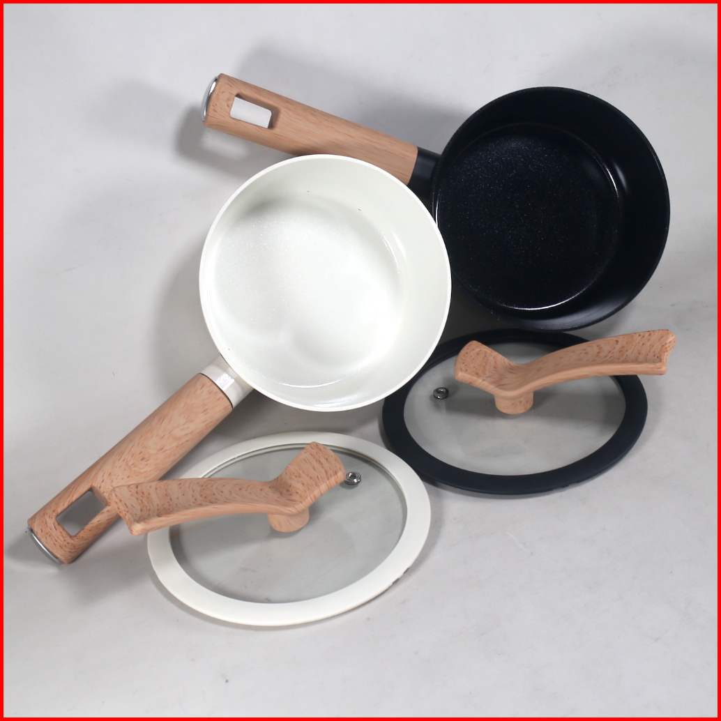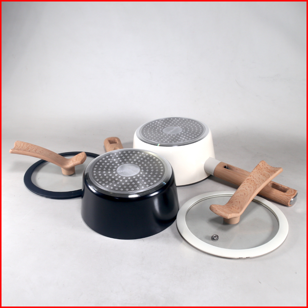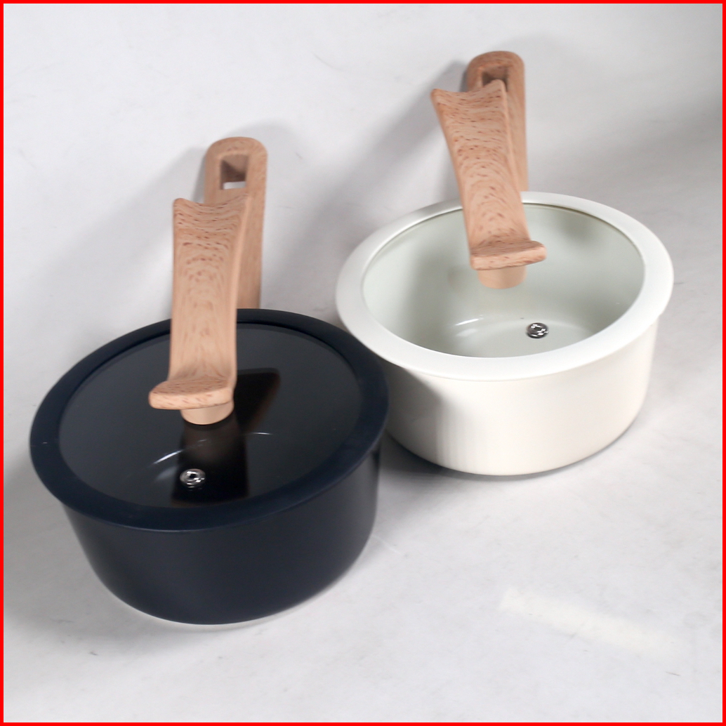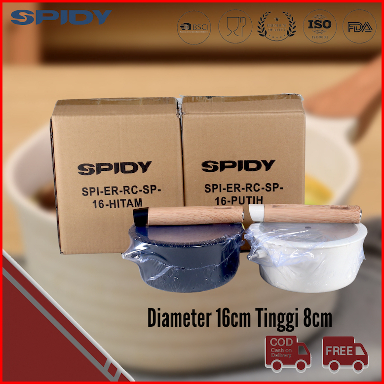 Spidy Panci Susu Granit Anti Lengket Tebal Induksi 16cm Tutup Kaca Templeted Gagang Kayu