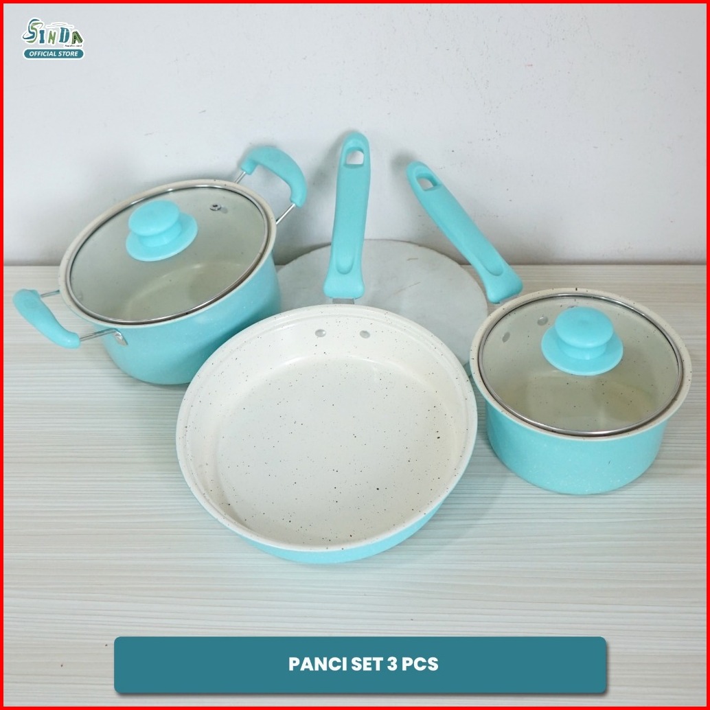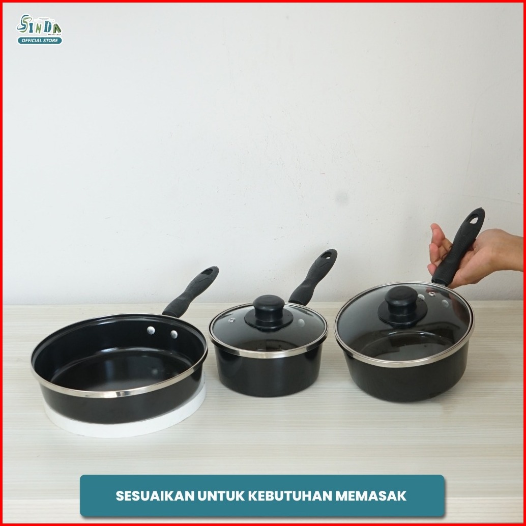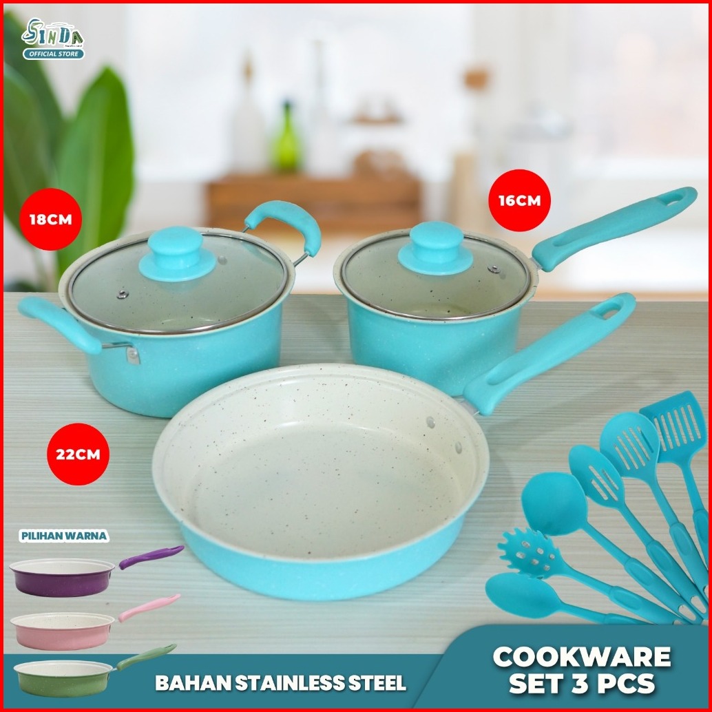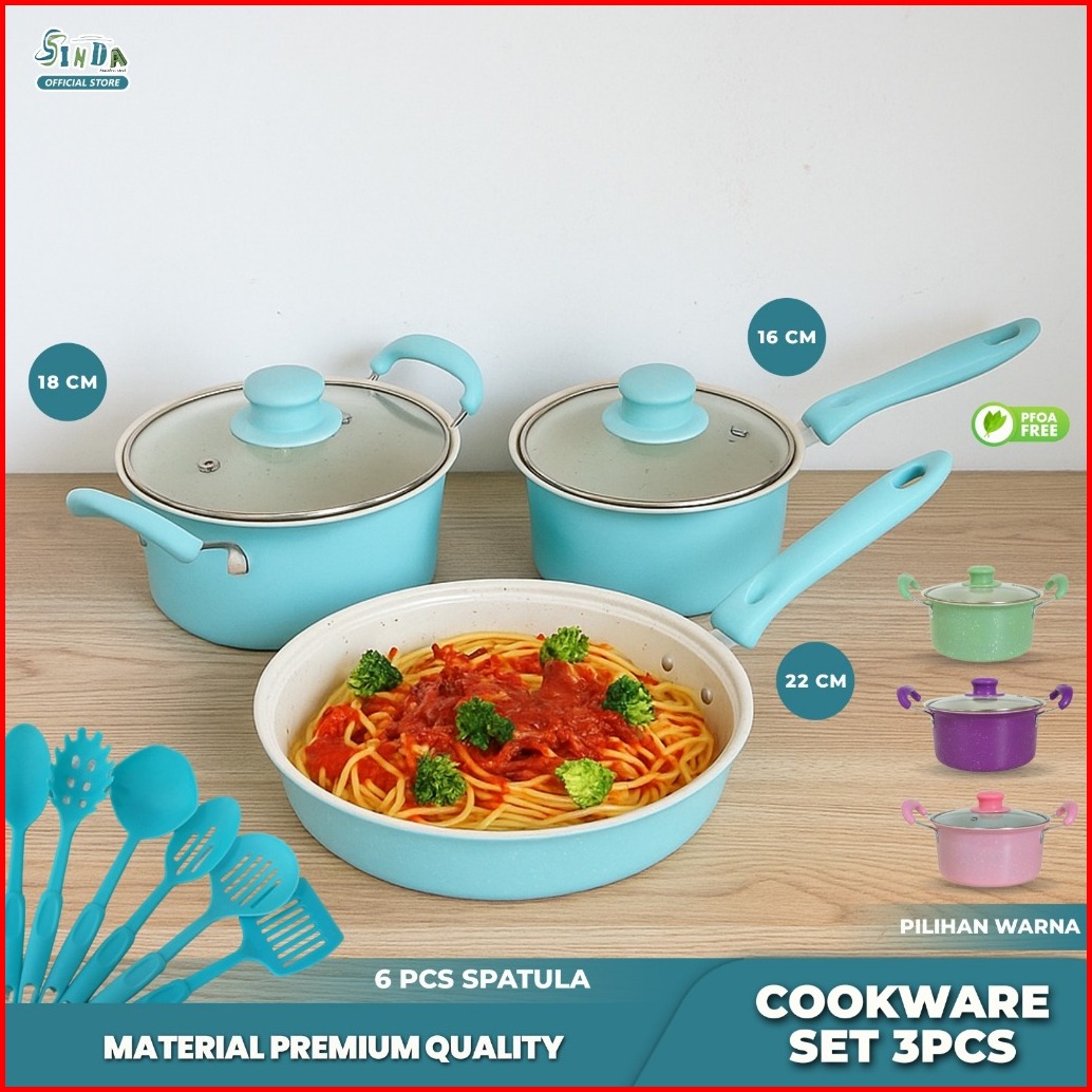 Sinda Panci Set 3pcs Lengkap Warna Frypan Saucepan Cookware Set Free Spatula