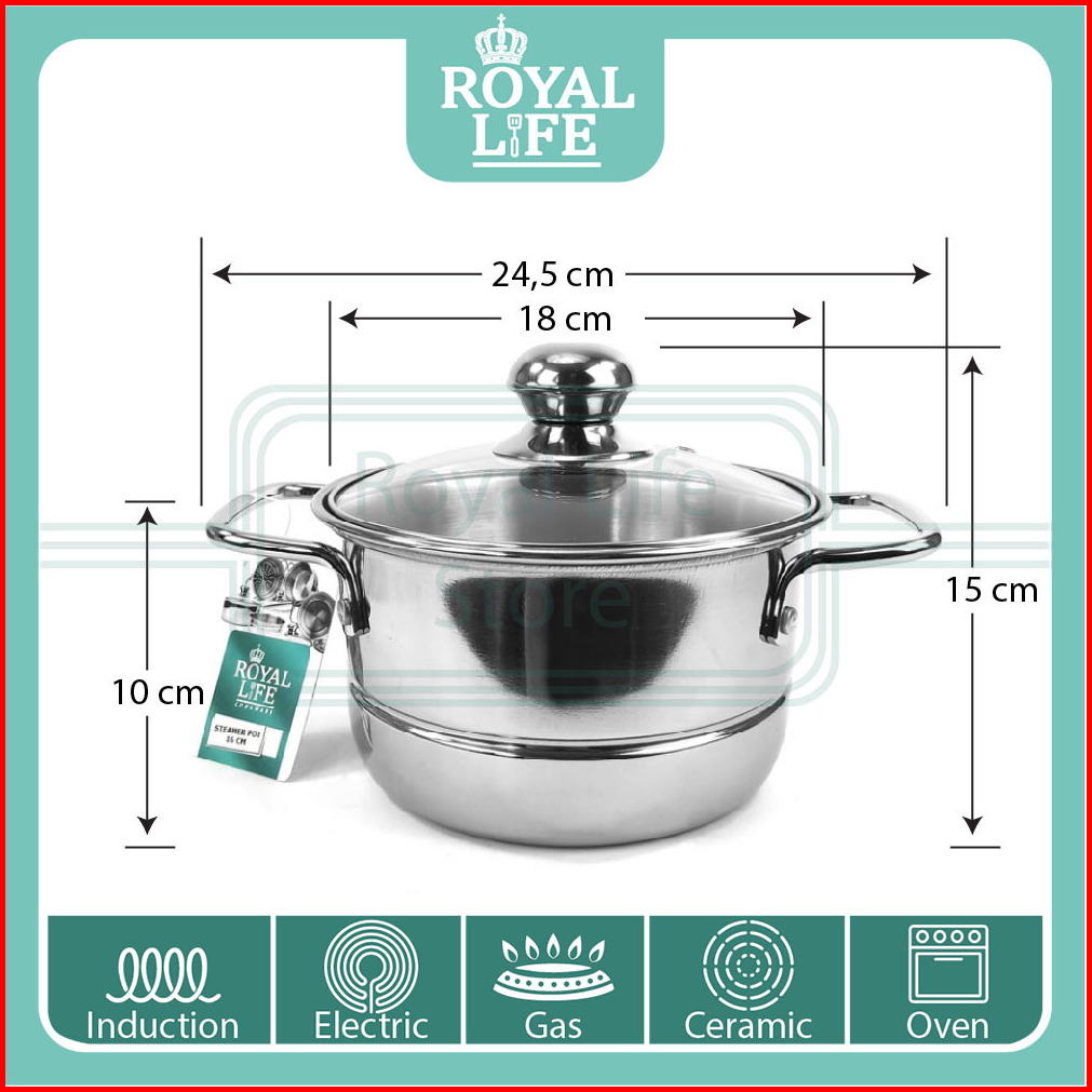 Royal Life Stainless Panci Kukus Dandang Mini 16 Cm Steamer Pot 16 Cm