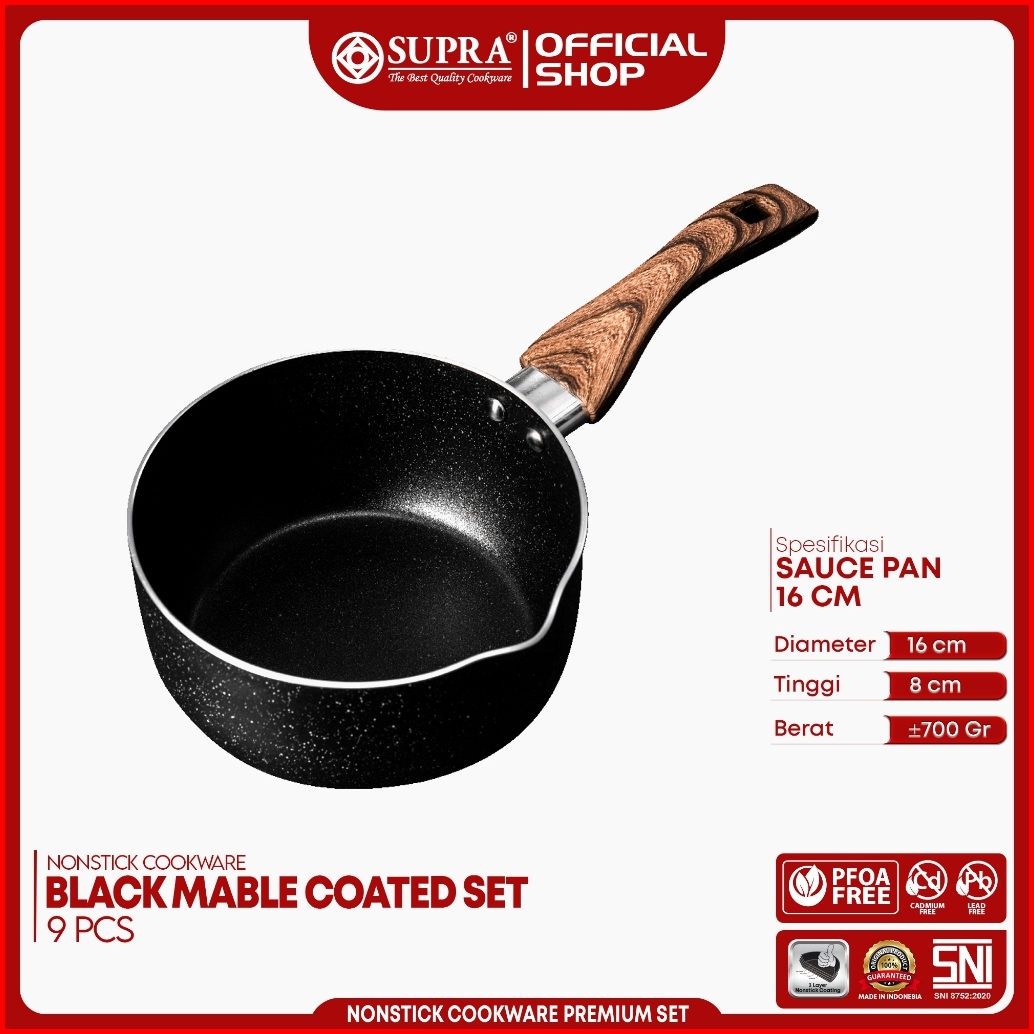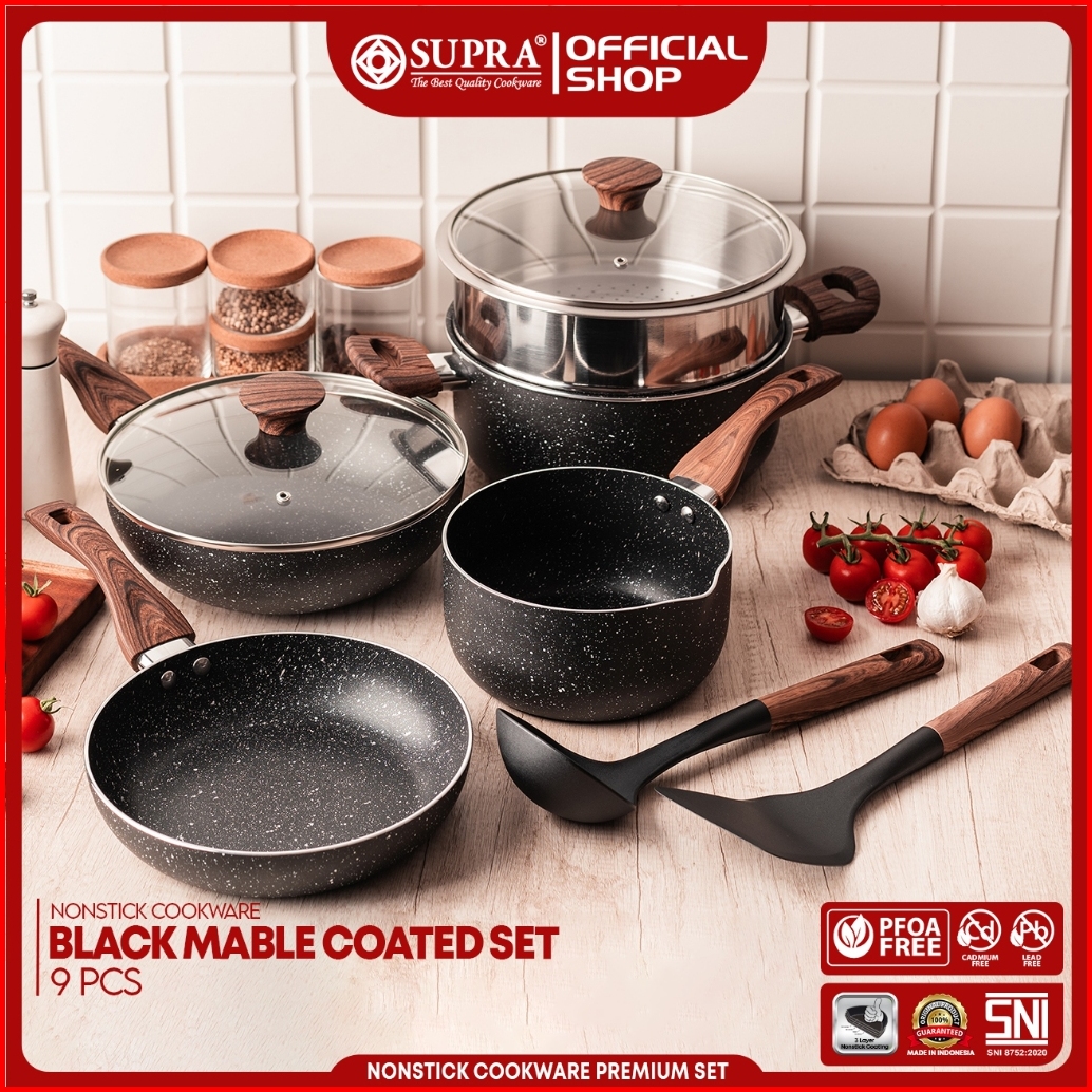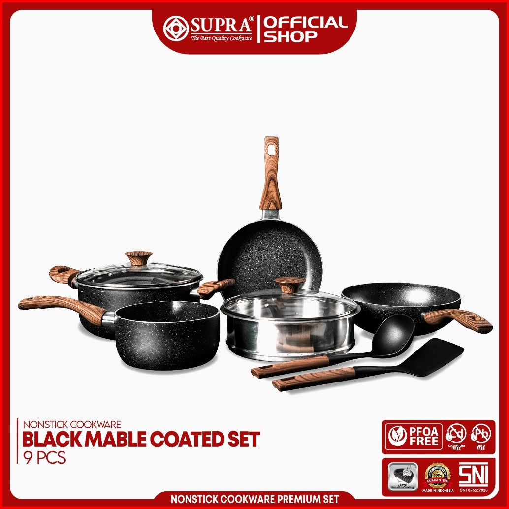 Supra Panci Set Anti Lengket 9 Pcs Black Marble Coated